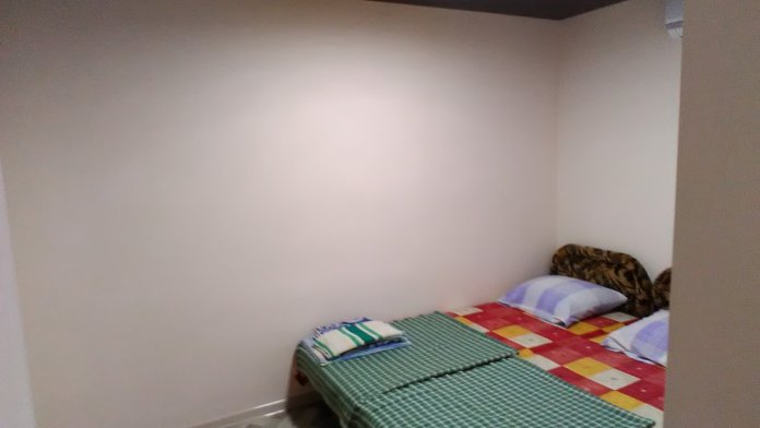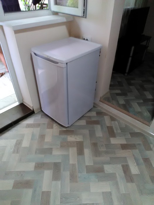 Номер (пластиковая мебель возле номера столик стулья), гардеробная, большая 2-спальная кровать + доп. место (односпальная) оснащен современной мебелью, спутниковым телевидением, кондиционером, холодильником, электрочайником.