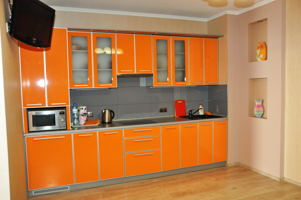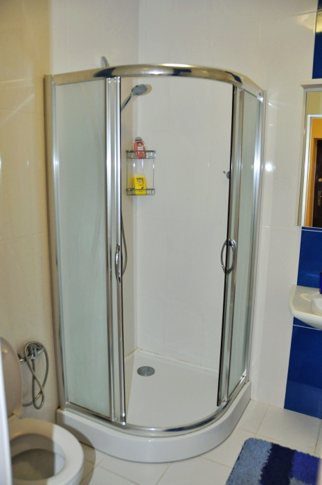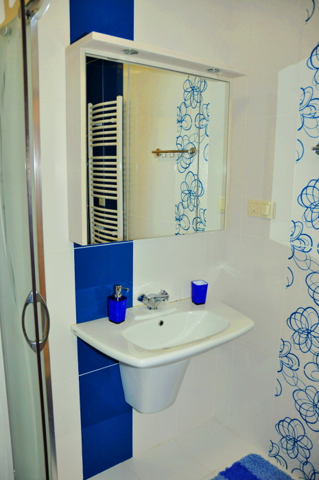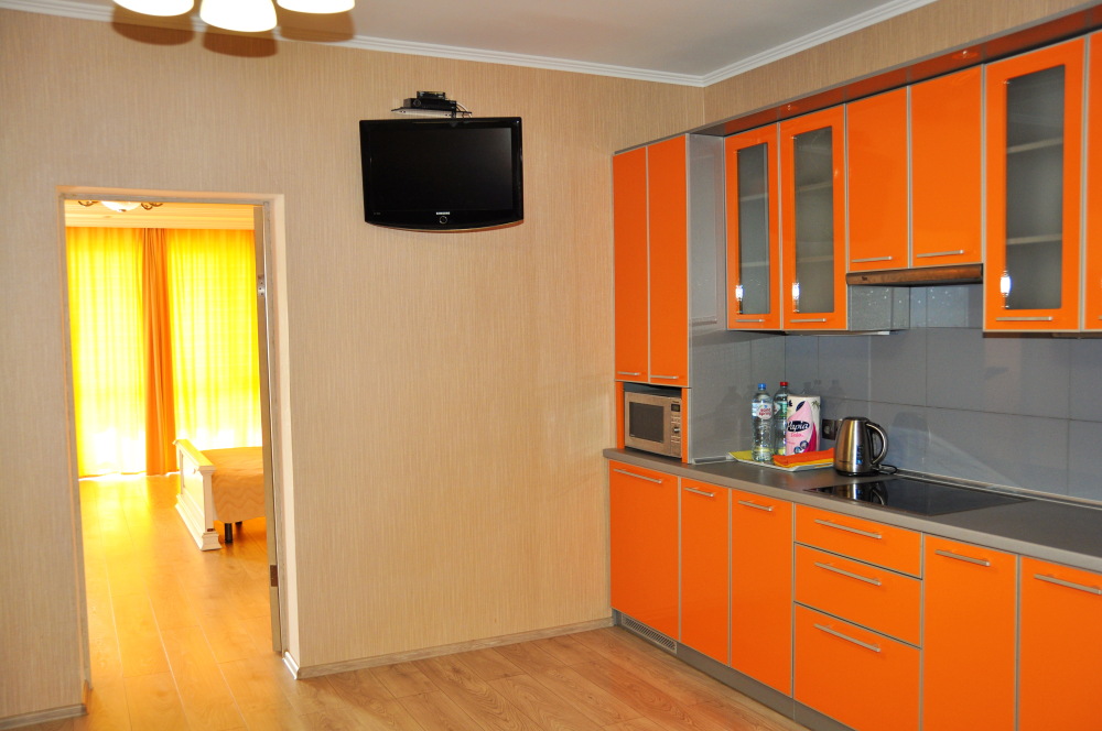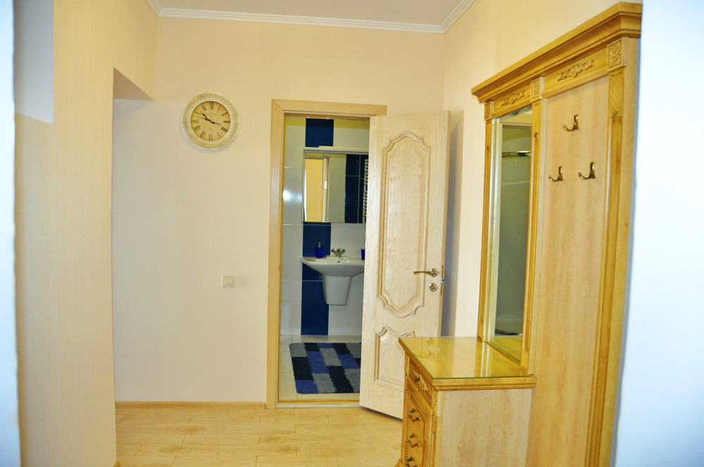В апартаменте имеется отдельная спальня, кухня со спальным местом, совмещенный санузел с душевой кабиной, коридор, балкон. Двуспальная кровать, большой раскладной диван, трехстворчатый шкаф, туалетный столик-зеркало, прикроватная тумбочка, тумба под телевизор, обеденная группа, кондиционер, утюг, гладильная доска, фен, сейф, напольный вентилятор, пылесос, 2 телевизора, холодильник, плита (на 4 конфорки), стиральная машина, бойлер, микроволновка, электрочайник, полный ассортимент обеденной и чайной посуды, скоростной WI-FI. Имеется набор полотенец и косметика для душа. На балконе большой обеденный стол со стульями, за которым Вы под шум прибоя, с замечательным панорамным видом на море и горы проведете незабываемые вечера.