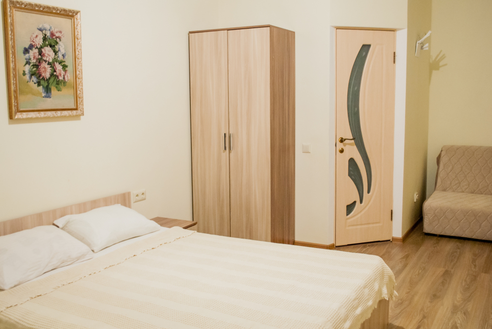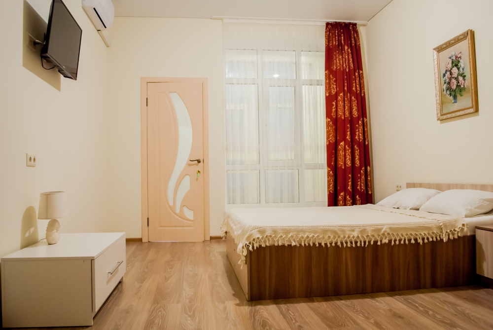 У нас Вам окажут радушный прием, предложат относительно бюджетный вариант отдыха на берегу Черного моря. Номера рассчитаны на семьи с детьми и дружеские компании, предпочитающие спокойный и размеренный отдых. А так же в 15 минутах от апартаментов находится набережная с кафе, ресторанами, живой музыкой, детской развлекательной комнатой, SPA-комплексом, водными аттракционами, ночным клубом «Маяк».