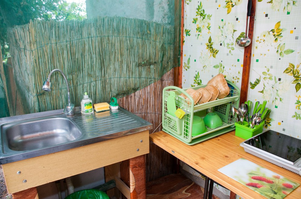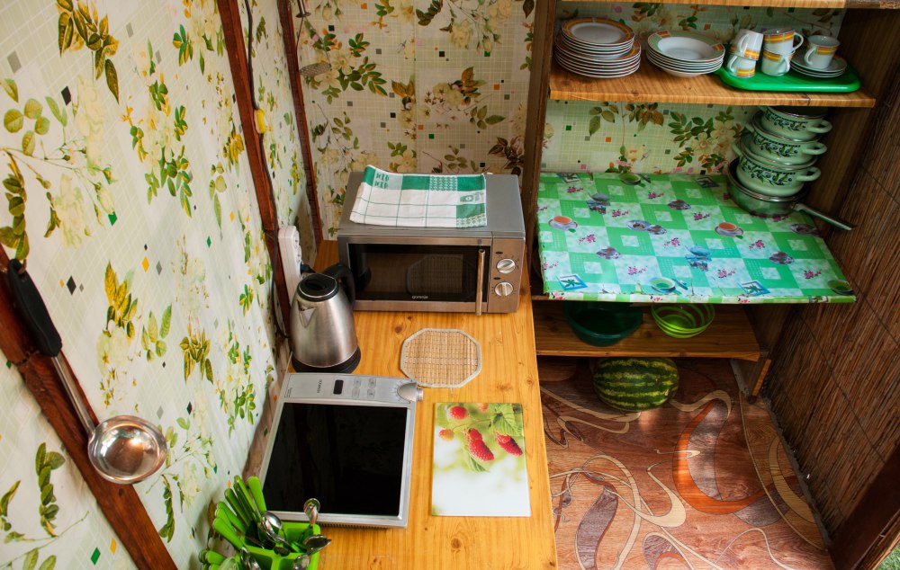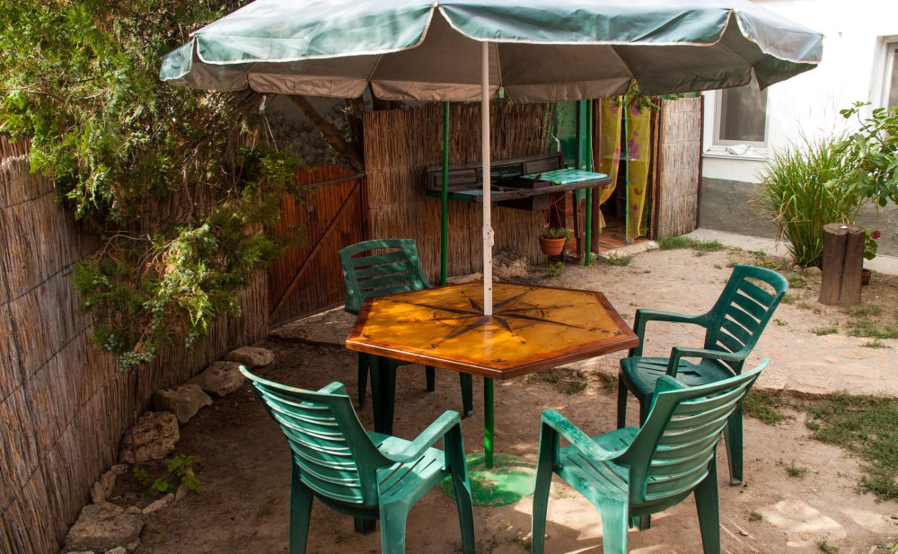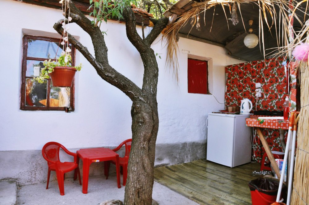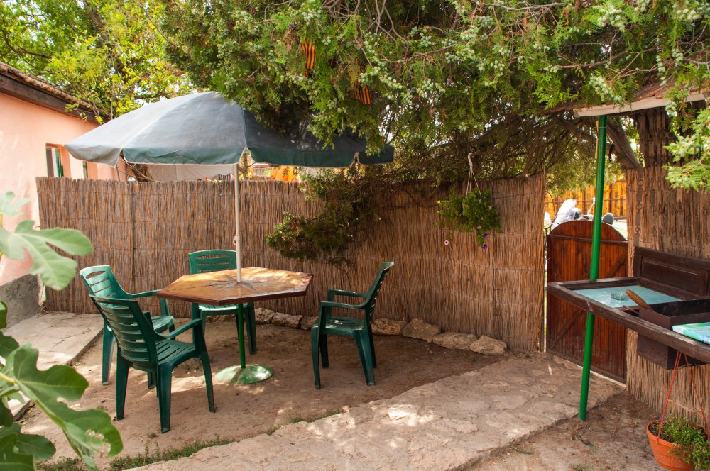 В домике: мебель, постельное бельё, Wi-fi, вентилятор. Удобства во дворе. Отдельный дворик с летней кухней. Холодильник, умывальник, плита, электрочайник, посуда, обеденный стол и столик для детей. Место для парковки и детская площадка в закрытом дворе.