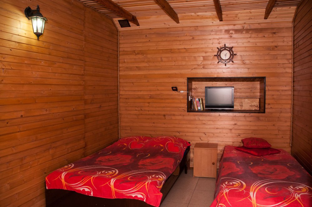 У нас есть варианты размещения на любой вкус: от Эконома до просторного Люкса или отдельного домика для дружной компании/семьи - Пиратской шхуны.