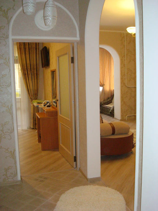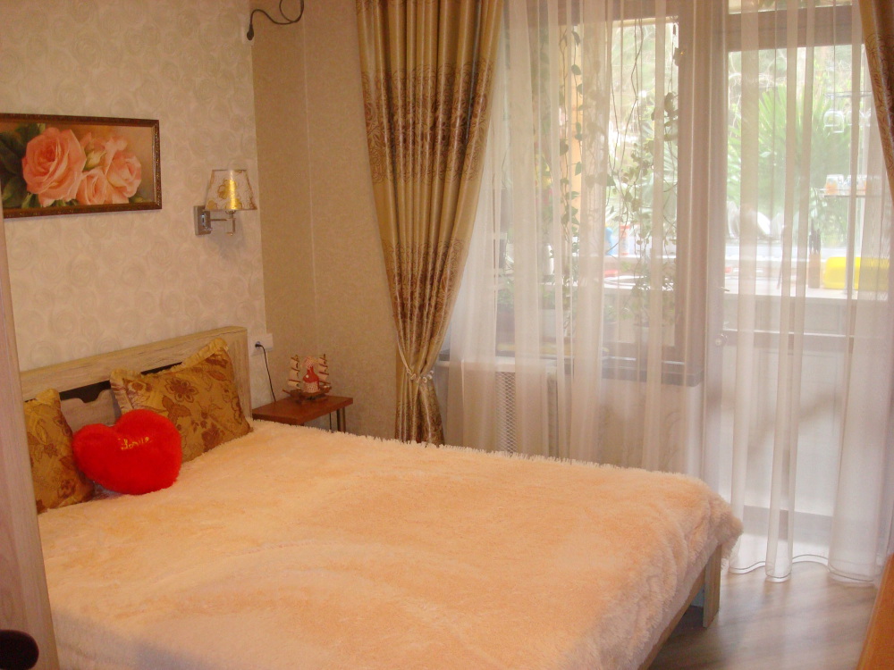 Рядом военный санаторий с красивым парком для отдыха.Квартира расположена на втором этаже пятиэтажного здания, имеется закрытый коридор, где можно оставить детскую коляску или предметы пляжного обихода,сделан свежий ремонт,оборудована двумя кондиционерами,двумя ЖК телевизорами 42 и 32 дюйма,стиральной машинкой --автомат,СВЧ печь,интернет WI-FI .
