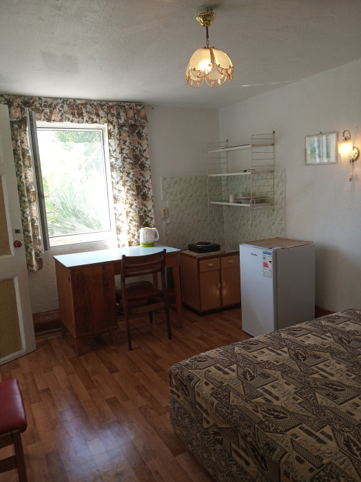 Прохладная комната. Холодильник, электроплитка и вся необходимая посуда в Вашей комнате.