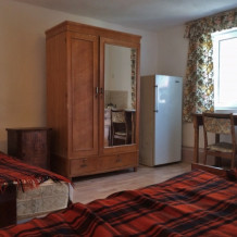 Второй этаж более комфортабельный, чем первый. Имеет отдельный вход. На этаже имеются: две спальни (в одной двуспальная кровать, во второй двуспальная кровать и полуторный диван), кухня с водопроводом, газовой плитой, холодильником и телевизором, совмещенный санузел, душ (горячая вода в душе постоянно), там же есть небольшая 6-метровая комнатка, подходящая для проживания одного человека.