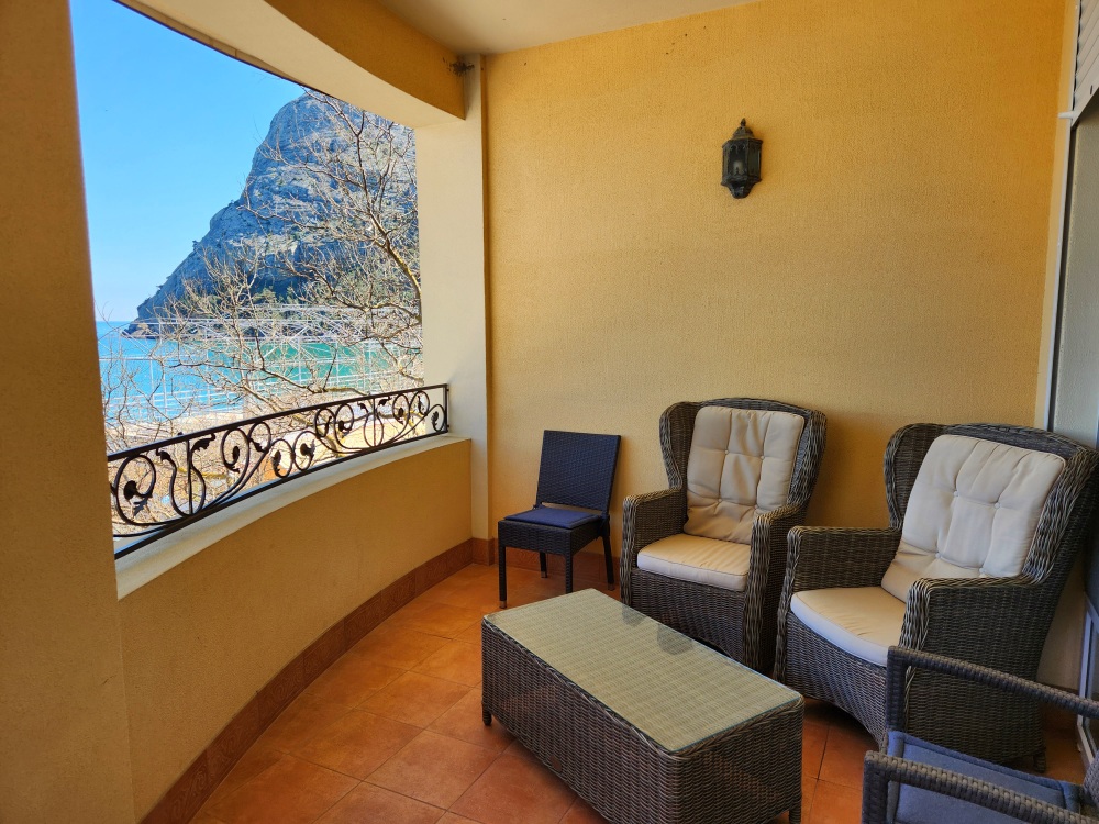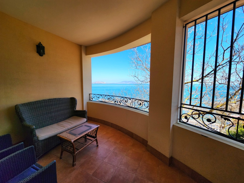 Номер находится в здании на берегу моря. В комнате: 2-спальная кровать, раскладной диван, телевизор, холодильник, электрочайник, набор посуды, кабельное телевидение, кондиционер. Балкон с видом на море, ротанговая мебель. Количество гостей: 2+(1 дополнительно).
