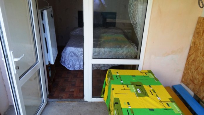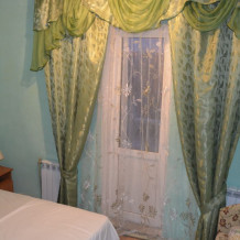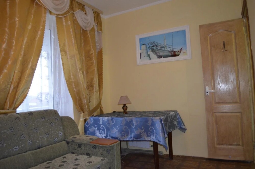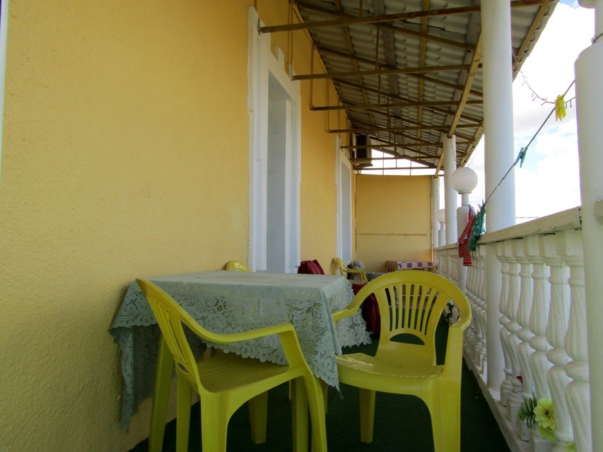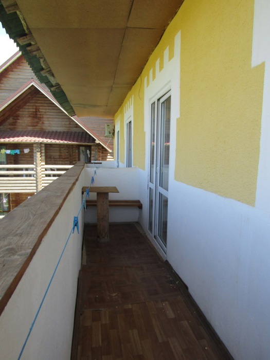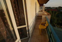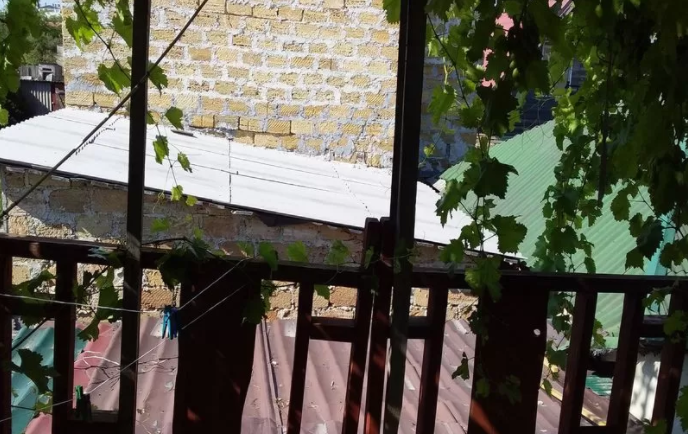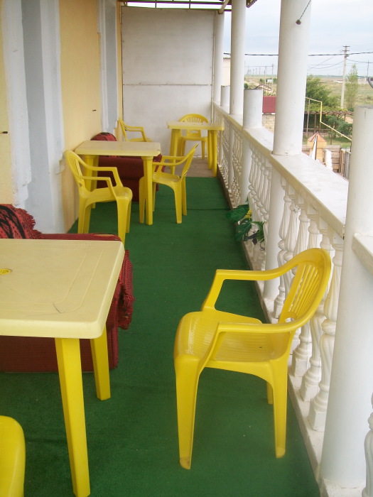 Находится на 2 этаже, в отдельно стоящем летнем домике. В комнате 3 отдельные кровати 0,9 х 2 м. По желанию 2 из них можно сдвинуть в одну большую. Есть шкаф, тумбочка, зеркало, телевизор, холодильник, кондиционер, чайник. Санузел в номере (душ, туалет, умывальник). Есть балкон большой с креслом и столом. На балконе лежанка. Можно отдыхать в тени виноградной лозы. Возле домика есть отдельная беседка только для Вас. Кухня - в 5 м от домика. Бассейн и детская площадка рядом. Балкон большой с креслом и столом.