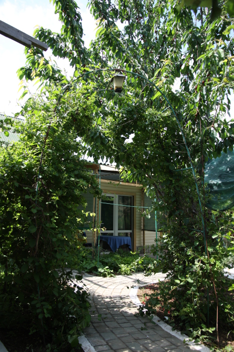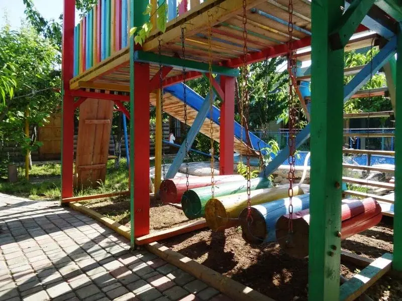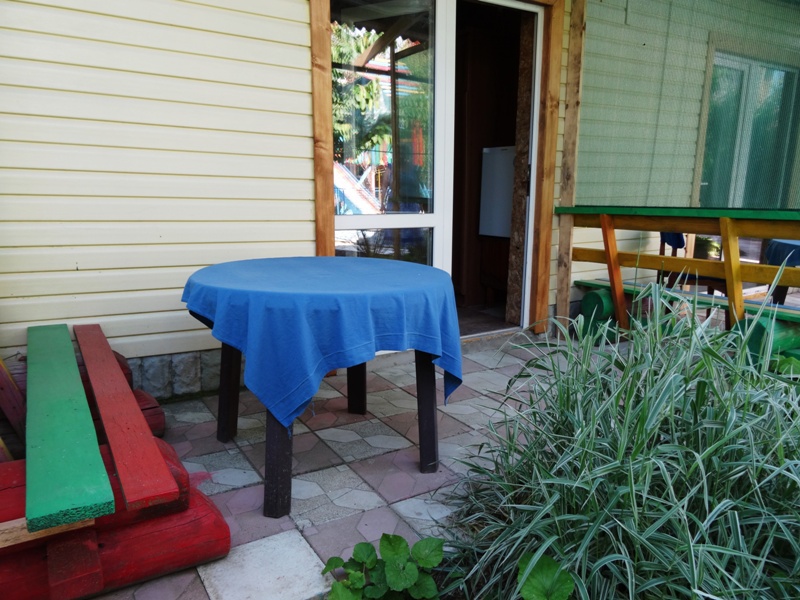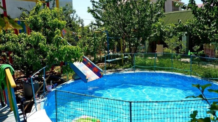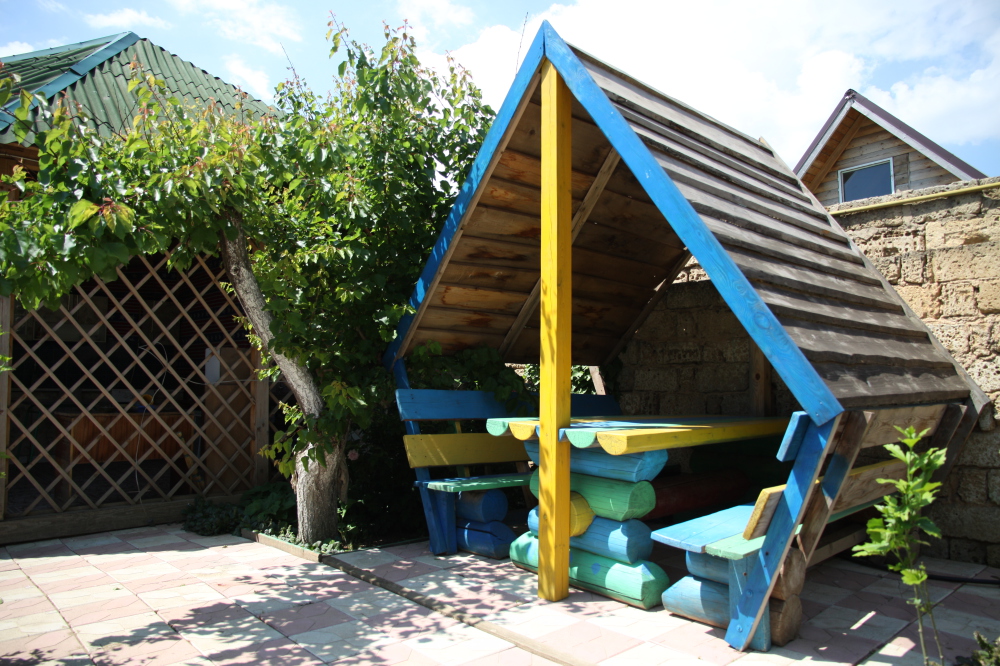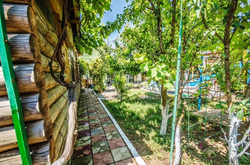 Двор утопает в зелени плодовых деревьев и кустарников, специально посаженных для гостей. Можно есть черешни, персики, груши, которых в изобилии посажено для Вас. Во дворе есть шикарный бассейн для детей и взрослых с горкой «Маленький аквапарк». С общей кухни видно как дети купаются в бассейне. Мы проводим ежедневные вечера развлечений с привлечением аниматоров, гостей и детей. Есть кукольный театр и 2 раза в неделю проводится представление с участием детей и мамочек. Готовьтесь стать актерами нашего театра на период Вашего отдыха. Имеется возможность покормить лебедей. Прямо возле дома есть детская площадка с качелями горки и спортивные снаряжения. А также навес 30 кв. м со столиком, диваном и настольными играми. Есть мангал и место для приготовления плова. Дрова, шампура и казан для плова бесплатно. Гостеприимный хозяин Виктор Васильевич приготовит для Вас любое замечательное блюдо из мяса на мангале.