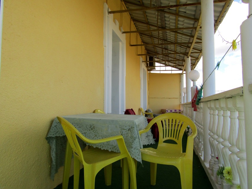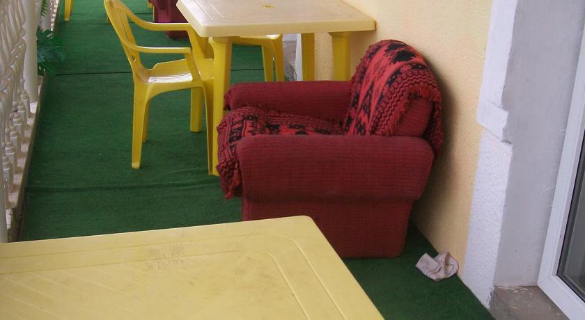 В номере: двуспальная и односпальная кровать для взрослого ребёнка, шкаф, тумбочки, зеркало, телевизор, холодильник, вентилятор. Большой балкон с лежанкой, столом и креслом.
