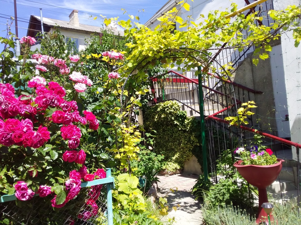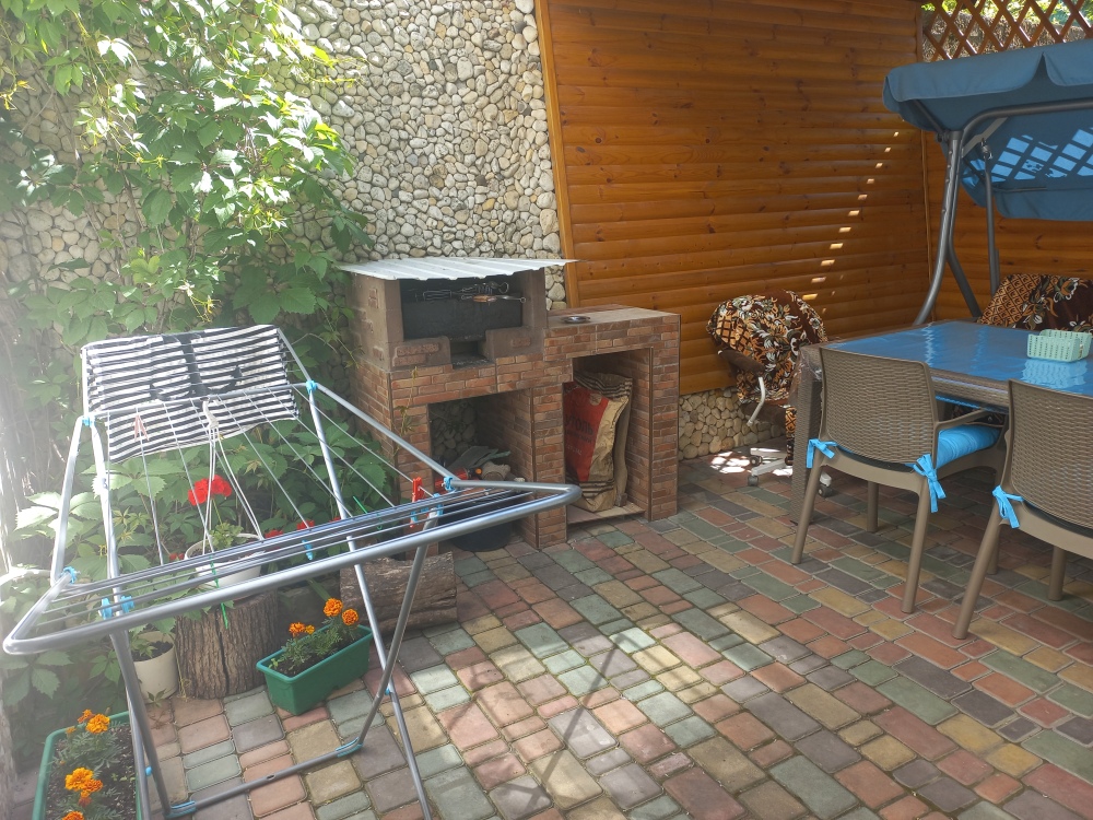 Имеется уютный дворик, качели, мангал. Дом находится в тихом районе до моря пару минут пешком. Прекрасное место для отдыха, ост. Пожарова. На пляже вид на Херсонес и красивая береговая зона. Зеленый район, до центра города две остановки или 10 минут пешком.