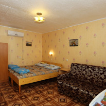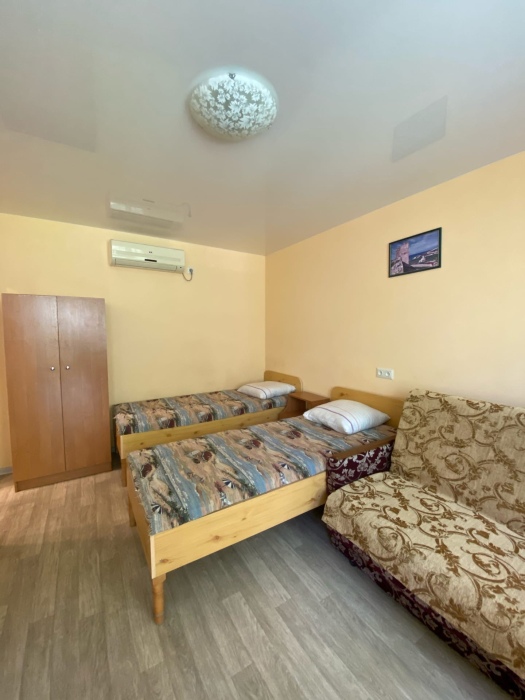 Для проживания предлагаем трехместные номера «Комфорт» с возможностью проживания от одного до трех человек. В каждом номере - полный санузел, набор необходимой мебели, LЕD телевизор с цифровым приемником, холодильник, кондиционер, комплект посуды, сейф, фен. Площадь комнат - 14 - 16 м2. Площадь санузлов - 3 м2. Комплектация спальными местами: две односпальные кровати (0,8 х 2.0 м) и раскладной диван (1,2 х 1,9 м). Кровати располагаются рядом. При необходимости можно ставить раздельно. Горячая и холодная вода - круглосуточно. Смена постельного белья и полотенец - не реже одного раза в неделю.