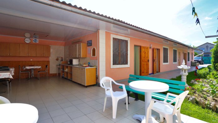 Гостевой дом находится в центре поселка, но в то же время в уютном и тихом месте. Расстояние до самого лучшего в Крыму «Золотого пляжа» - 250 м.