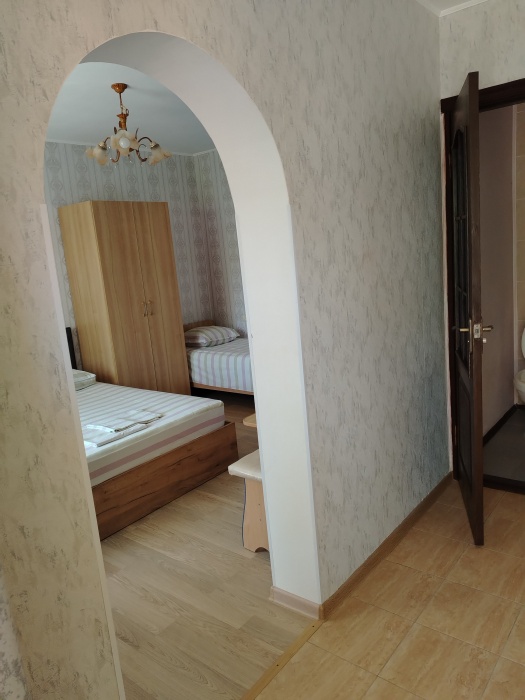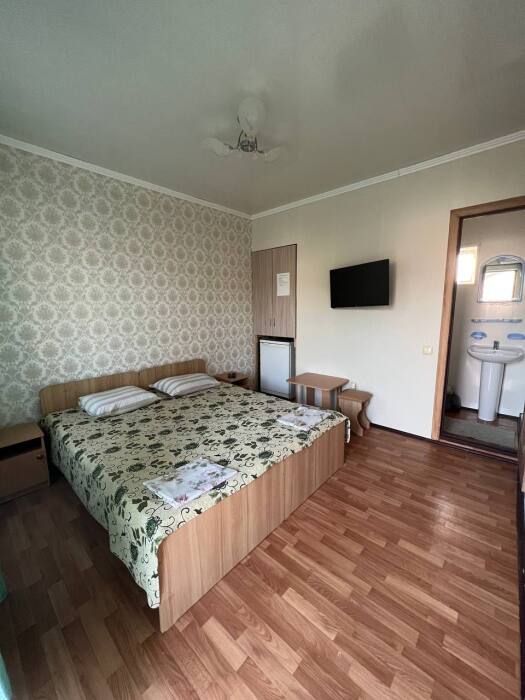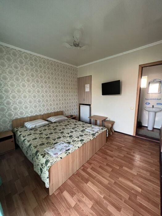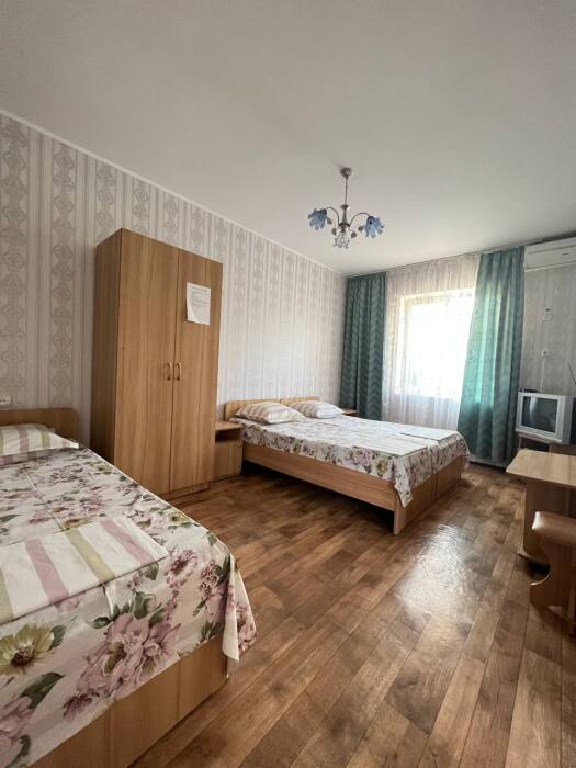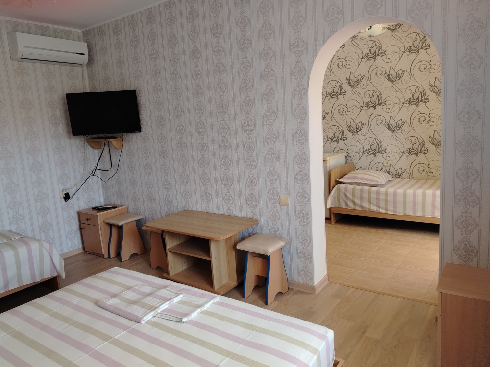В номере находится 2-спальная кровать и 2 односпальные, душ и санузел ( горячая и холодная вода круглосуточно), телевизор, холодильник, кондиционер, wi-fi. Отдыхающим предоставляем постельное белье и полотенце