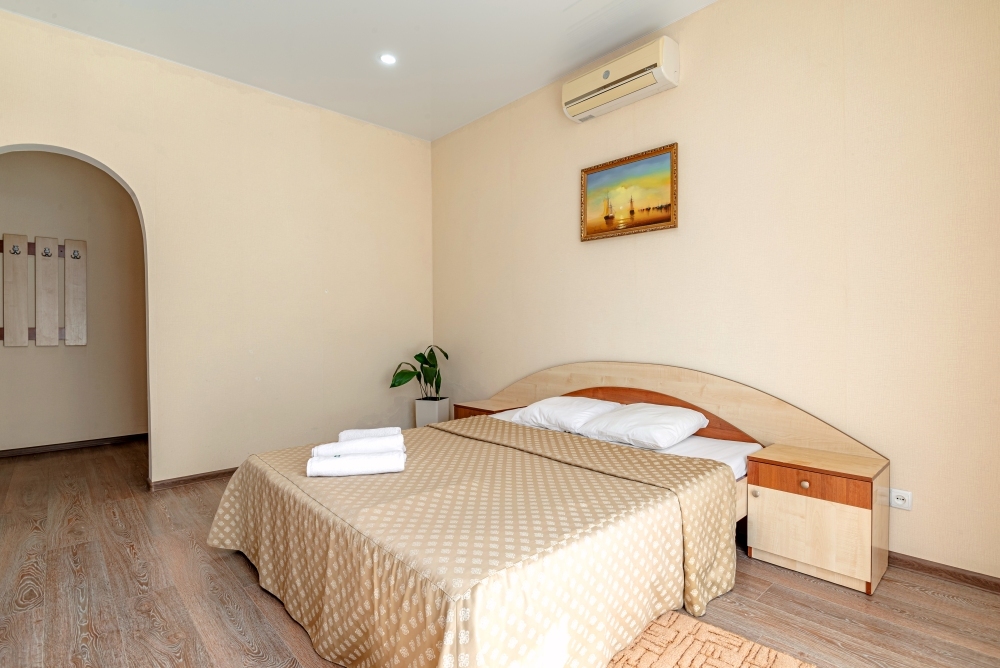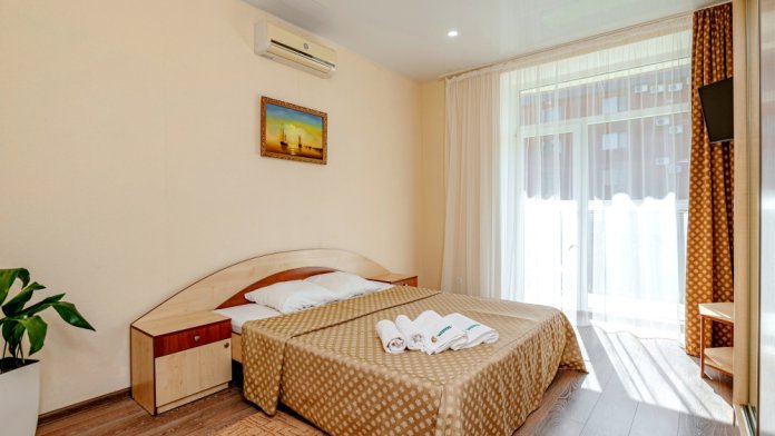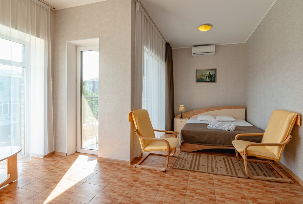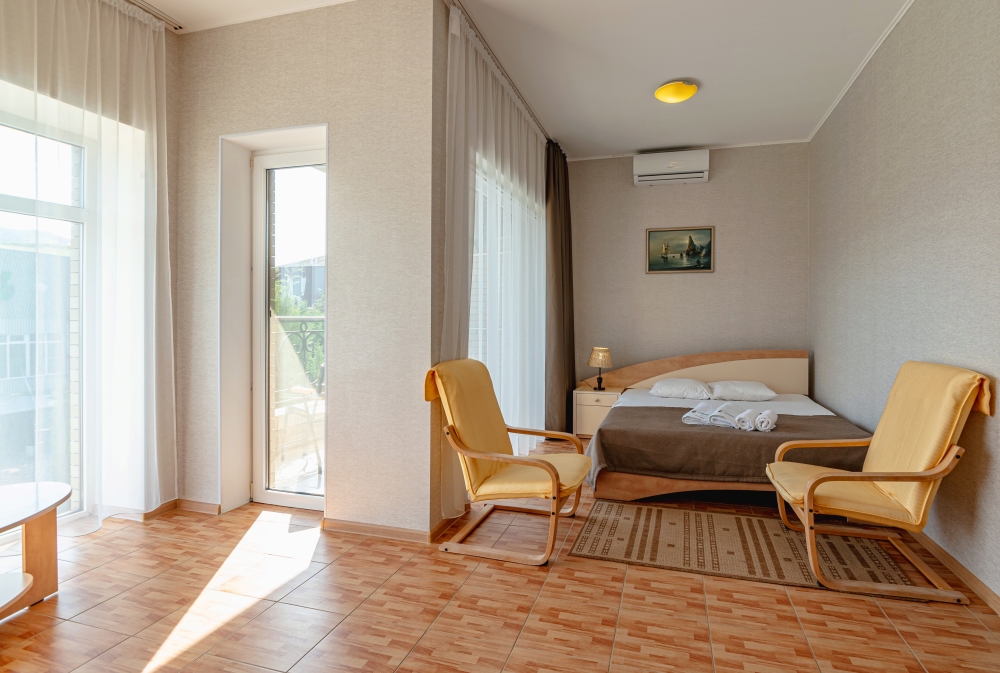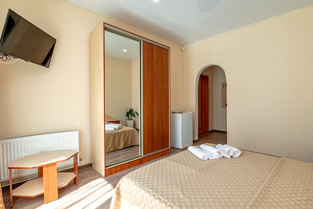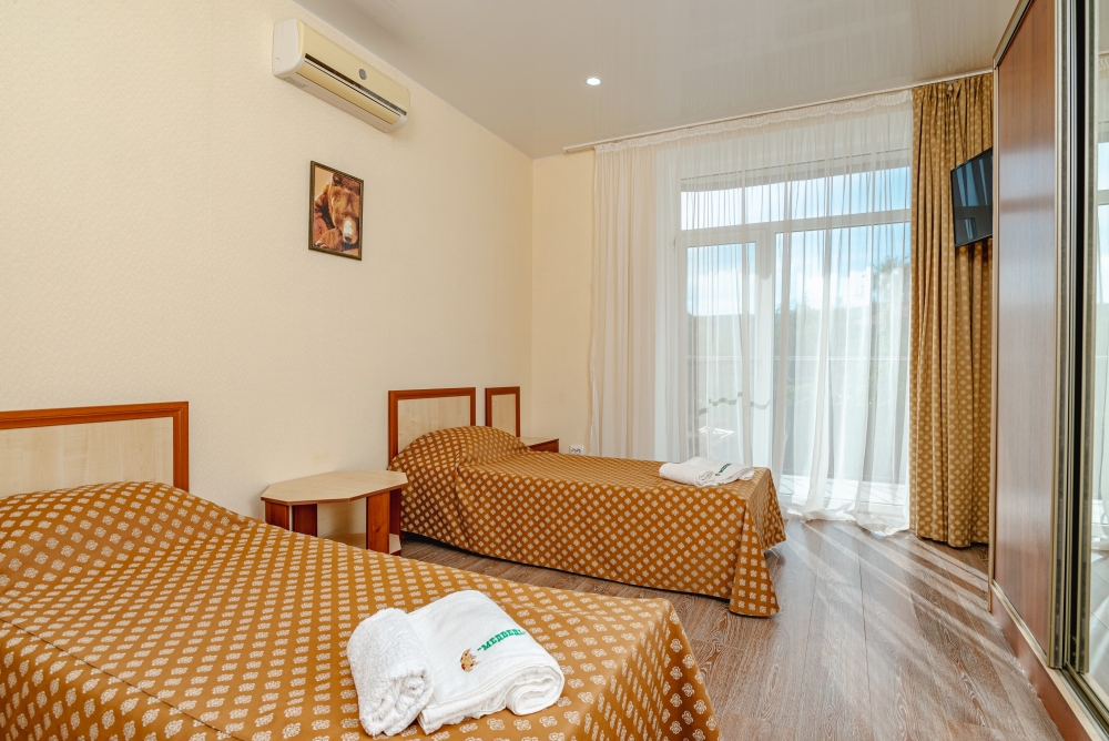 Номер рассчитан на двух отдыхающих с возможностью дополнительного размещения еще одного человека.