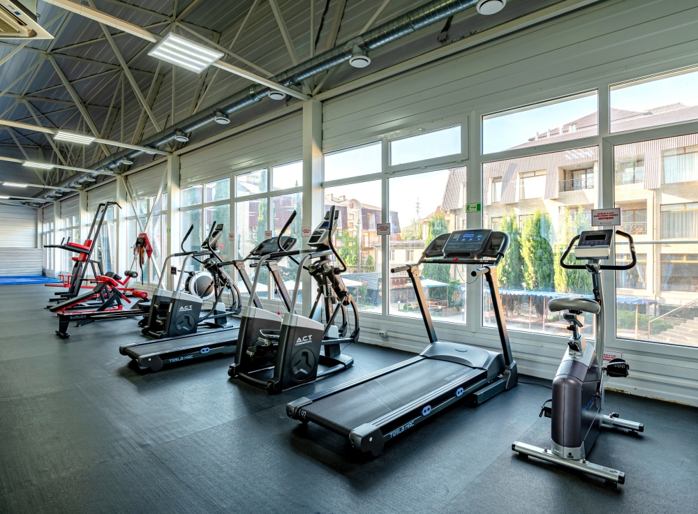 Тренажерный зал 450 кв. м, оснащён профессиональным оборудованием: для Ваших тренировок в зале есть кардио-зона и зона тренажерного зала. Также спортзал оборудован борцовским рингом и универсальным ковром для разных видов спорта. Отель располагает большим перечнем занятий и тренировок, где каждый гость может выбрать, то что ему по душе, от йоги до силовых тренировок, трекинговых походов, единоборств, фитнеса, стретчинга и многих других. Для Вас мы установили раздевалки с удобными современными шкафчиками и душевыми кабинками. Есть футбольное поле и теннисный корт.