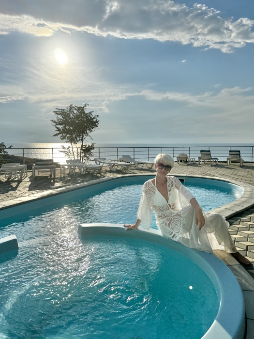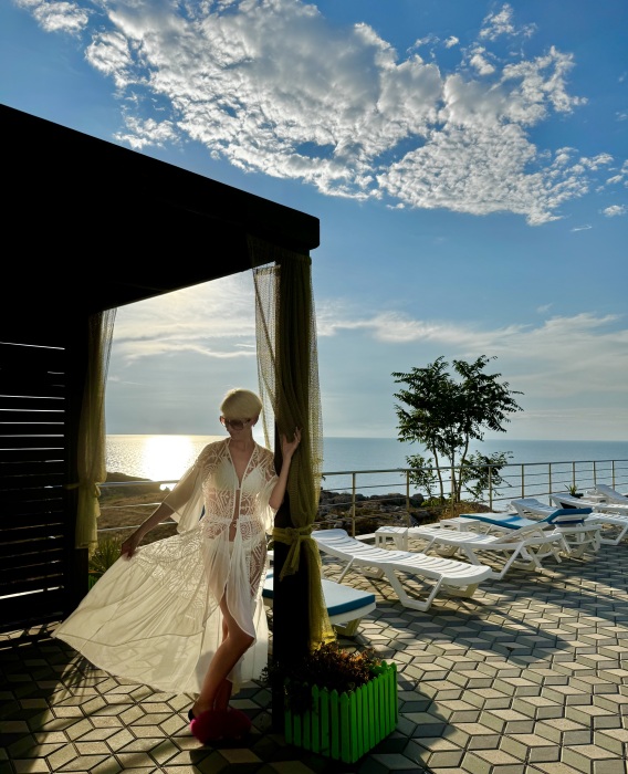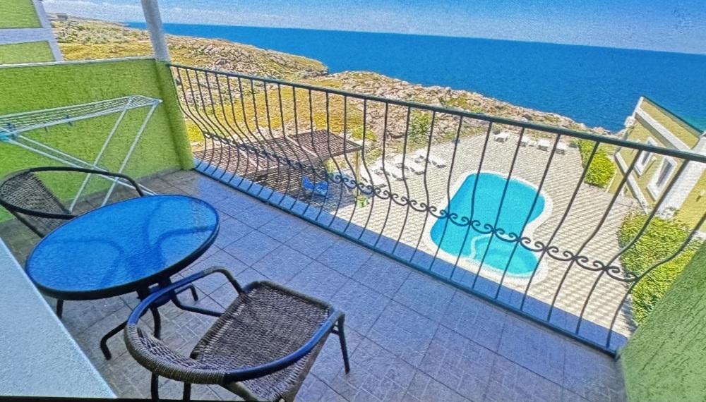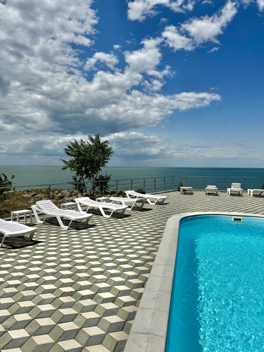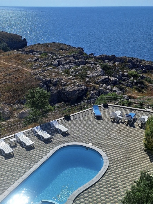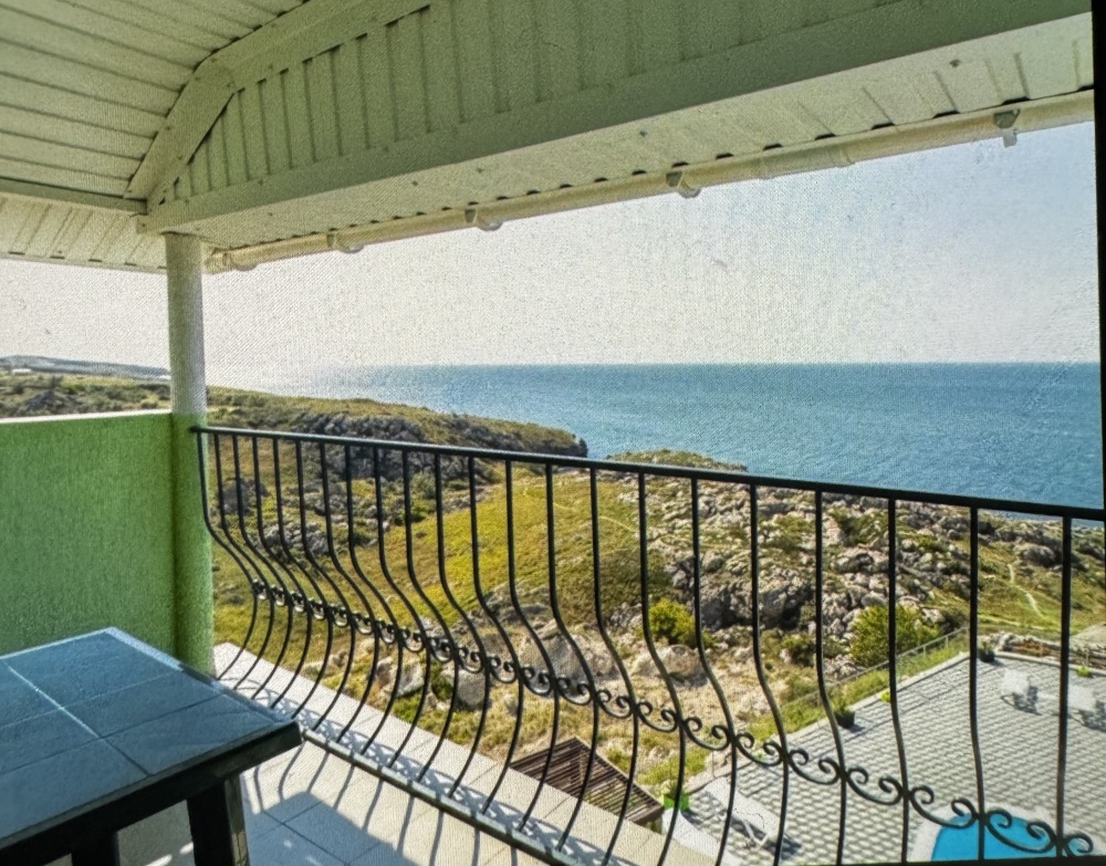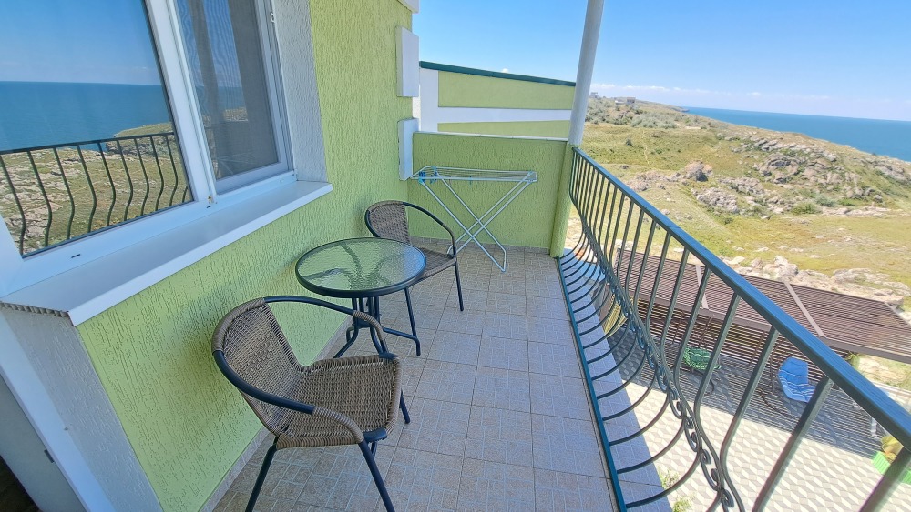 Трёхместный номер вместимостью до трёх человек,в номере полуторная кровать и одна односпальная,шкаф, журнальный столик, холодильник, кондиционер, телевизор, санузел.Номер с балконом, открывается прекрасный вид на море,скалы,сидя за столиком можно проводить красивейшие закаты.