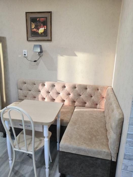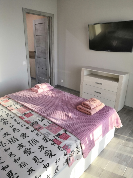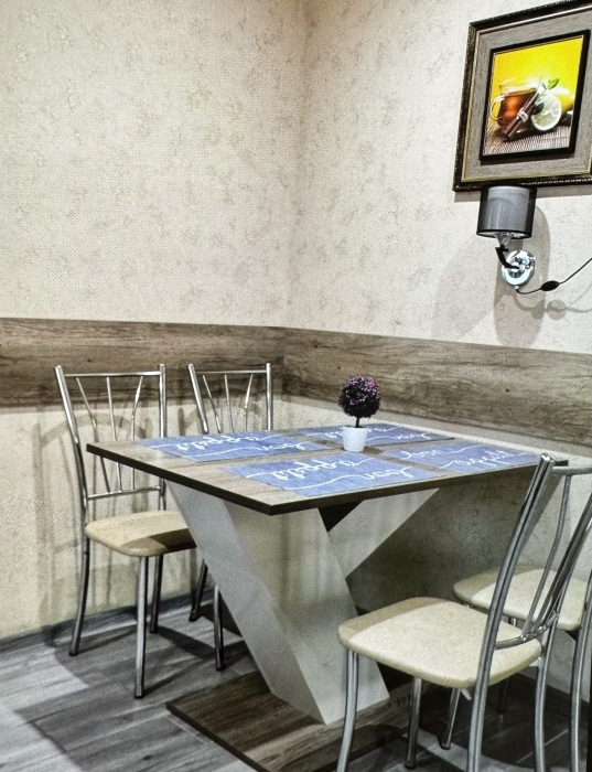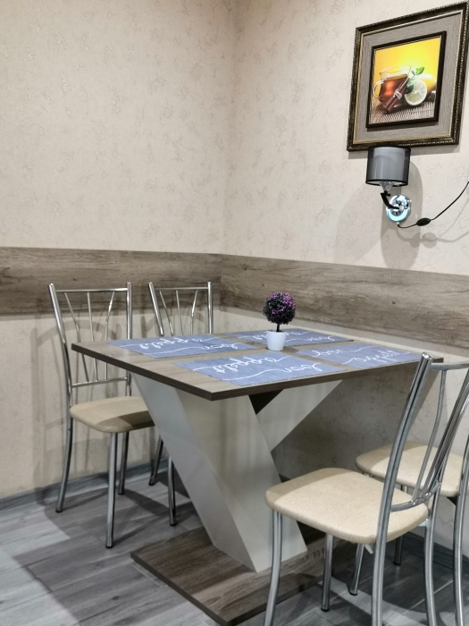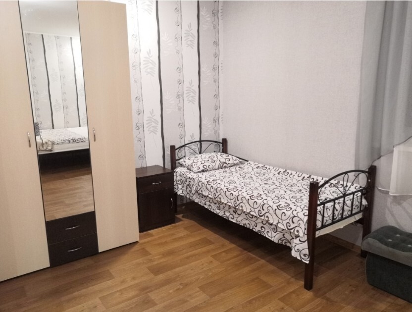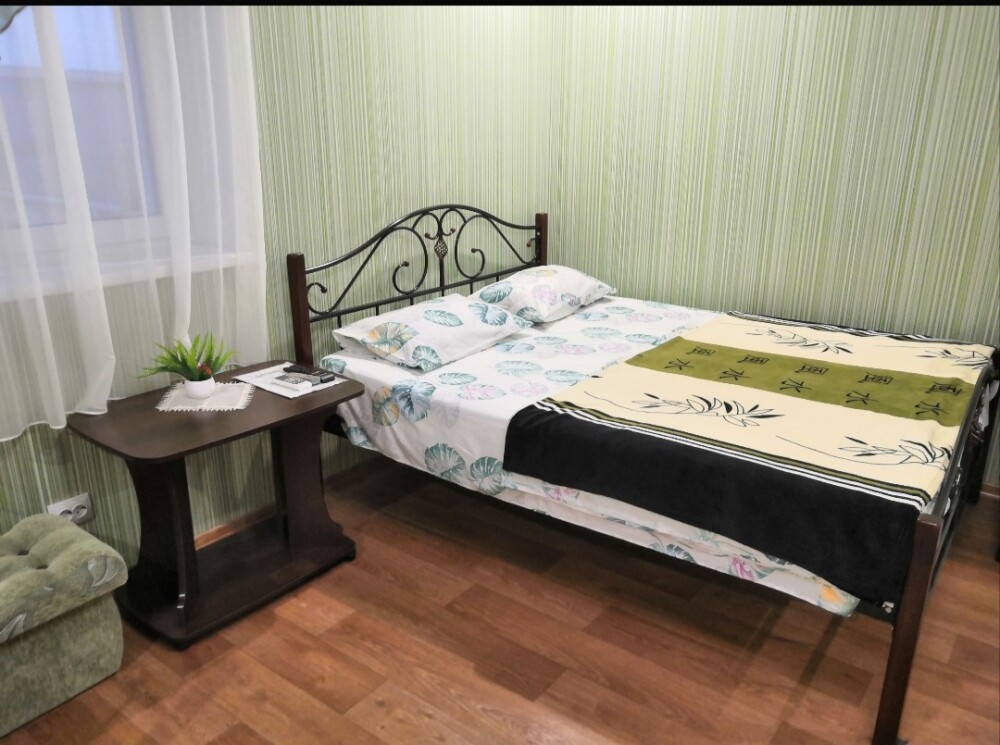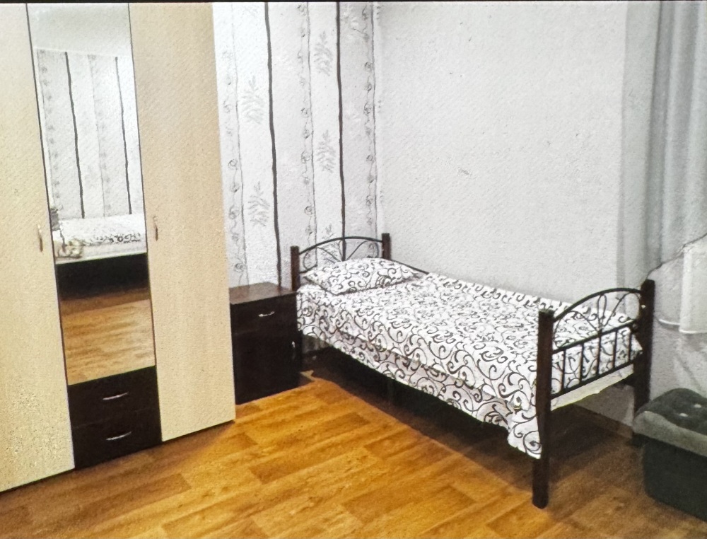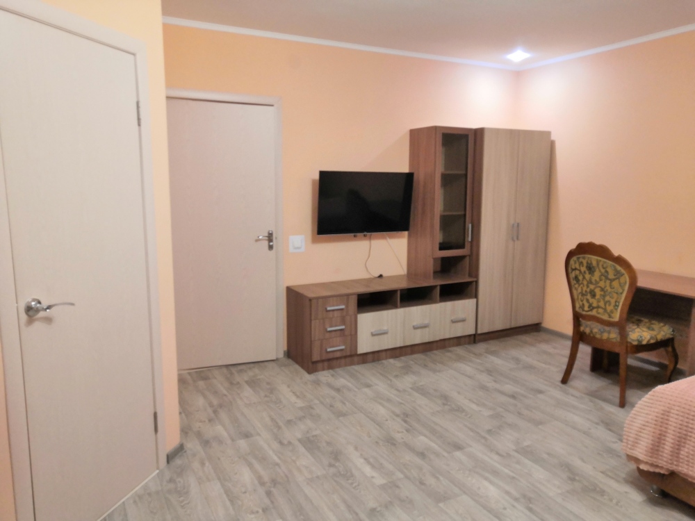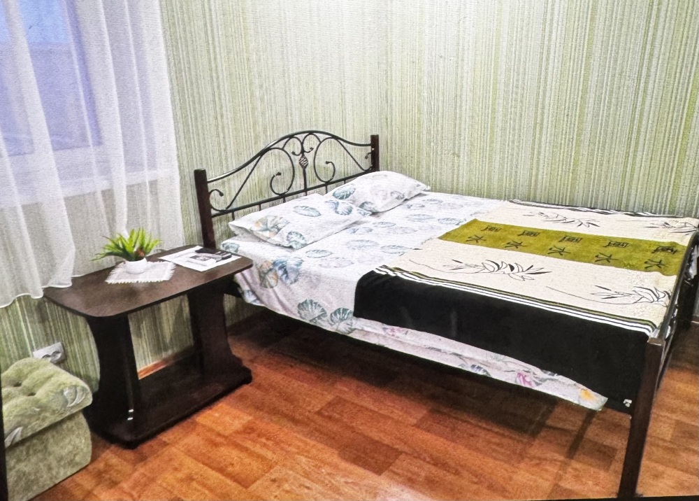 Двухместный номер расположен на третьем этаже,в номере двуспальная кровать с ортопедическим матрасом,два кресла банкетки, журнальный столик,прикроватная тумбочка,шкаф, холодильник, чайник, минимальный набор посуды, телевизор, кондиционер, санузел,балкон(стол, два стула, сушка для белья) .