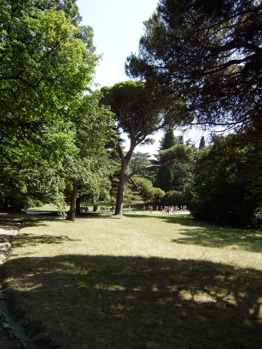 В конце парка дегустационный зал завода Массандра и нижняя станция канатной дороги на АЙ-ПЕТРИ. Парковка машин рядом с номером(бесплатно).