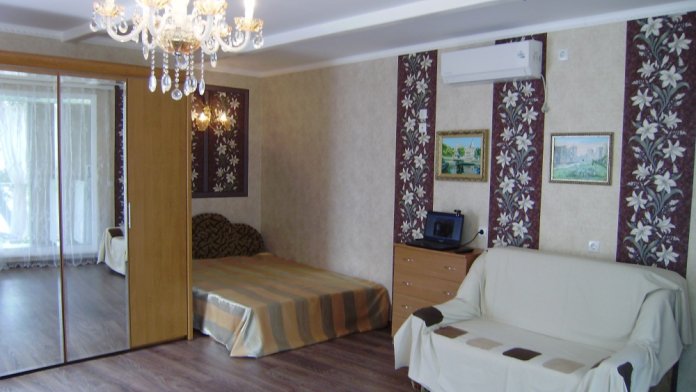 До центра 5 мин.пешком,до моря 10 мин.через парк.В номере евроремонт,кондиционер,мебель,своя кухня,холодильник,санузел,холодная,горячая вода круглосуточно.Кабельное ТV,Интернет WI-FI,. С животными не принимаем. Стирка личных вещей - услуга платная.
