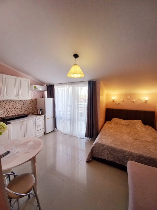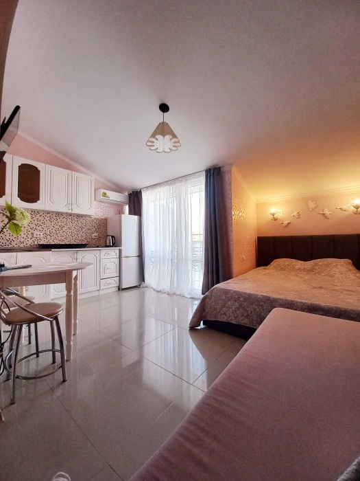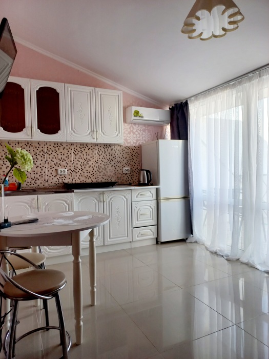 В апартаментах сделан современный ремонт. Есть необходимая мебель, бытовая техника, а так же кухонная зона для вашего комфортного отдыха.