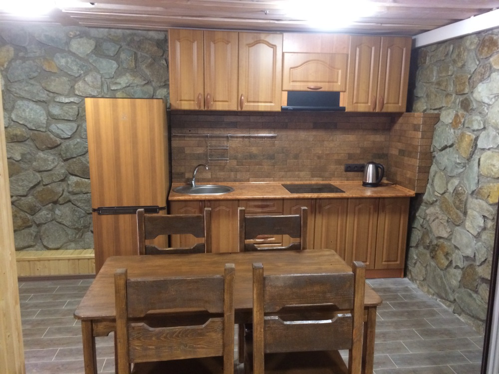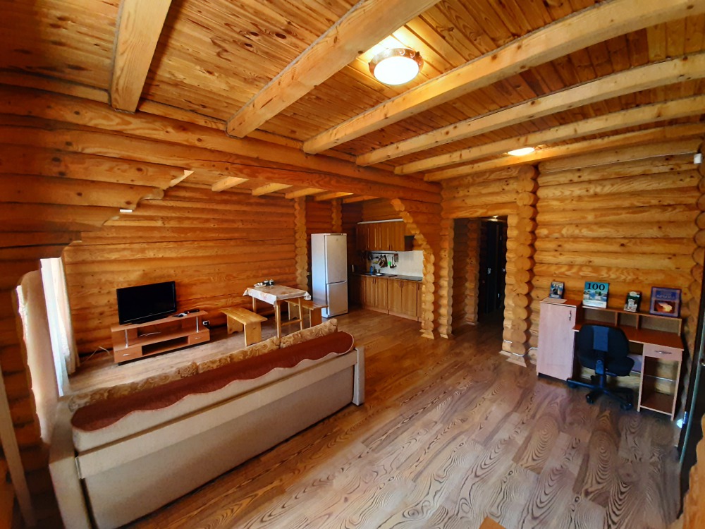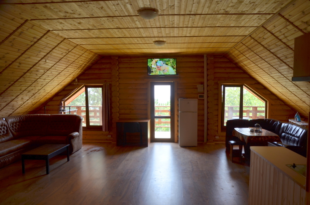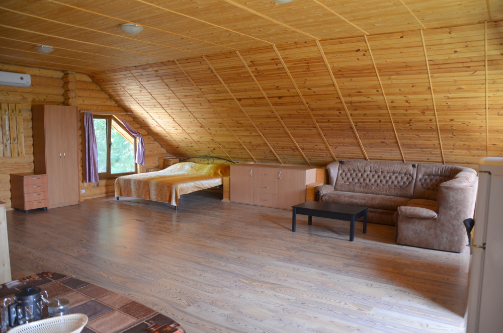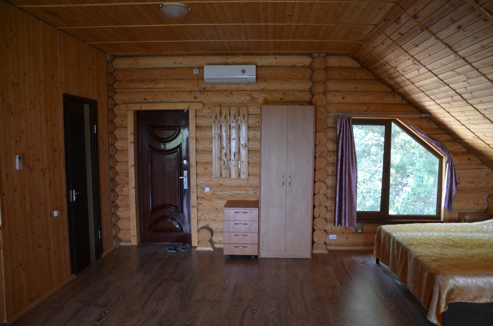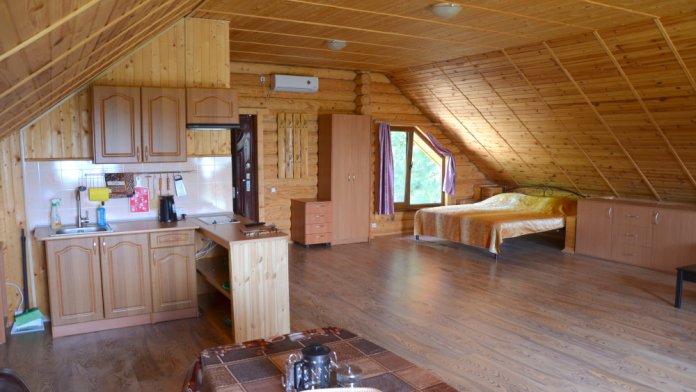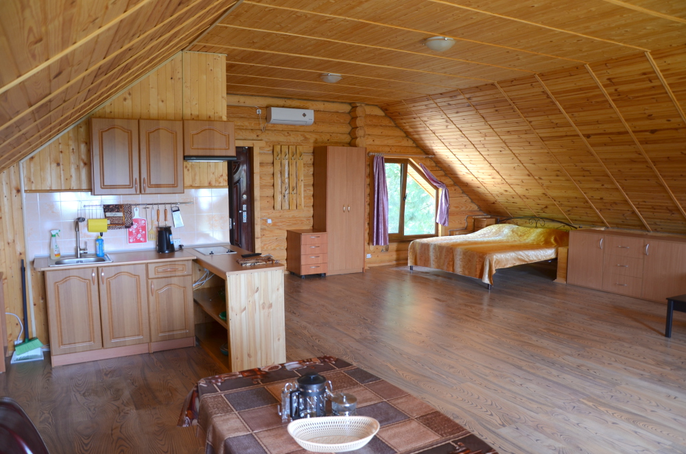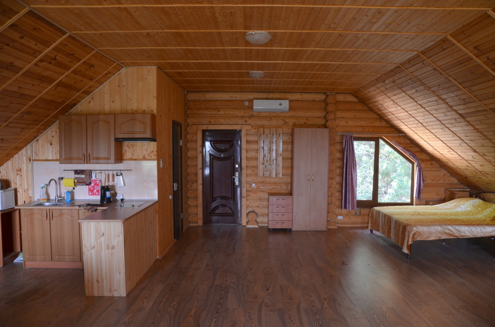Этаж под ключ «студия» (70м2): включает в себя большую двухспальную кровать, большой угловой диван, сан узел, а также обширный видовой балкон оборудованный столиком. Wi-Fi, плоский телевизор, стиральная машинка, сушилка для белья, кондиционер, микроволновую печь, чайник, утюг, фен, холодильник, полноценная кухня с варочной поверхностью и всеми принадлежностями для готовки.