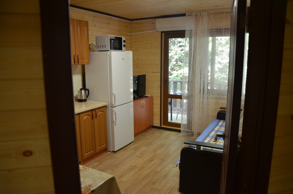 Этаж под ключ двухкомнатный «Лесная тишь» (34 м2) включают в себя холл кухню (спальные места раскладывающийся диван) и спальню (спальные места двухспальная кровать), санузел, балкон оборудованный столиком. В вашем распоряжении будет Wi-Fi, плоский телевизор, стиральная машинка, сушилка для белья, кондиционер, микроволновую печь, чайник, утюг, фен, холодильник, полноценная кухня с варочной поверхностью и всеми принадлежностями для готовки.