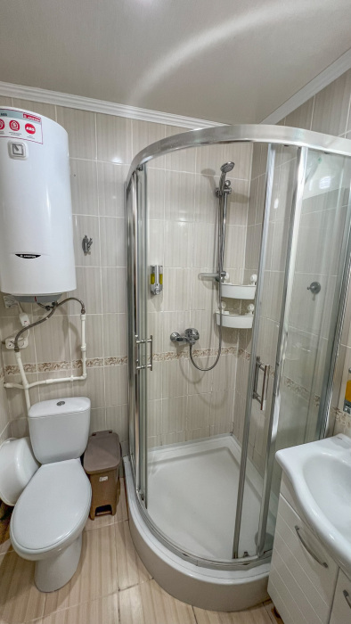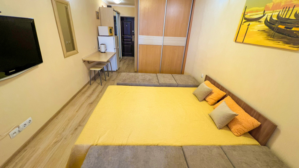 Пляж мелко-галечный, песочный. Wifi, холодильник, чайник, мультиварка, посуда, бойлер 50л, кухонный стол, комфортная! кровать 2-х спальная с доп. топпером 4 см (1,4х2,0)+ две раскладных кресло-кровати (0,7х1,83), кухонный стол, мебель на балконе (стеклянный стол + 3 кресла ротанговых), душ. кабина, цифровой сейф, бесплатная парковка у дома.