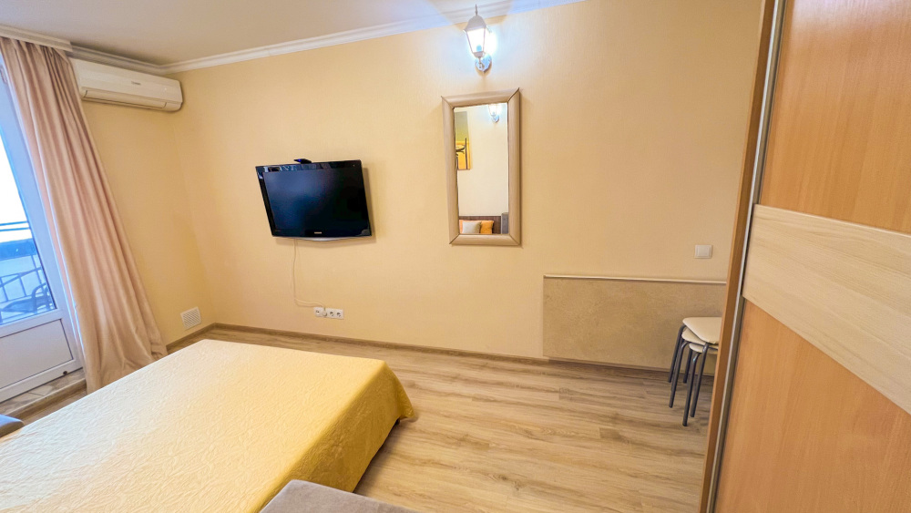 Расположен в уютном 4-х этажном здании на 1-м этаже, 1-я линия (ближе только на пляже:-). 3D тур по номеру https://truevirtualtours.com/ru/tour/zvezdnyj-bereg-
