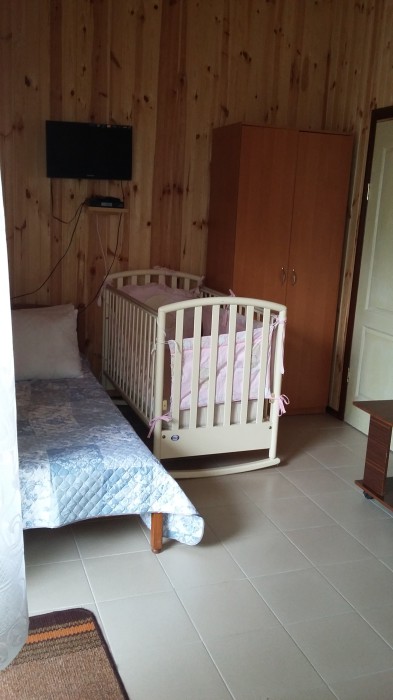 При строительстве гостевого дома большое внимание уделялось экологичности строительных и отделочных материалов. Отделка номеров - настоящее дерево, пластик при строительстве не использовался.
