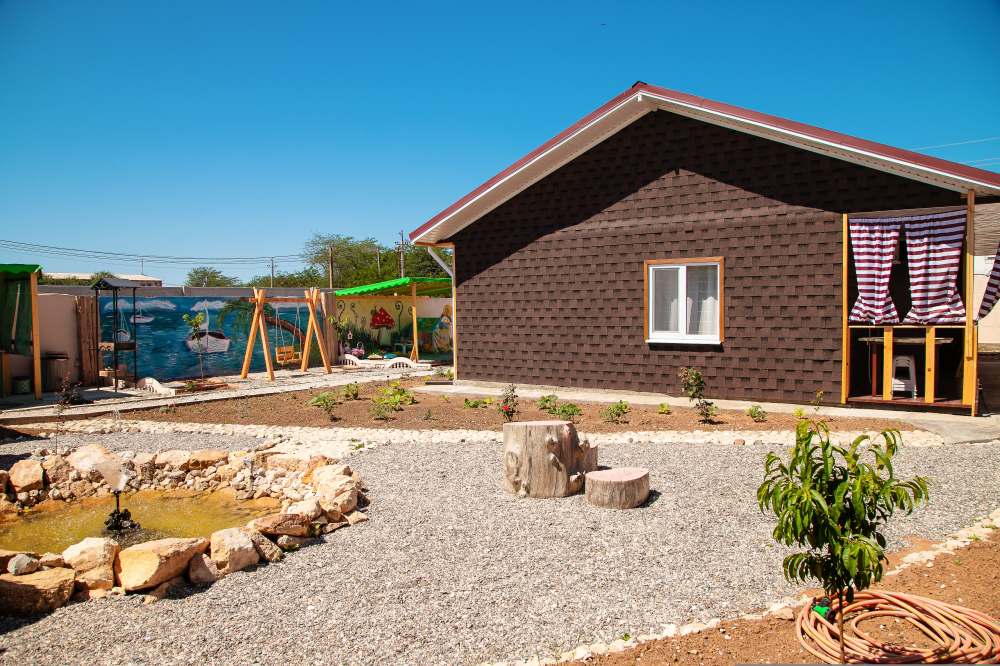 Номера построены в 2020 году и находятся на отдельной территории, на которой размещены: кухня с полным набором посуды, песочница, качели, гамак, мангал, беседка для отдыха, фонтан, сад.