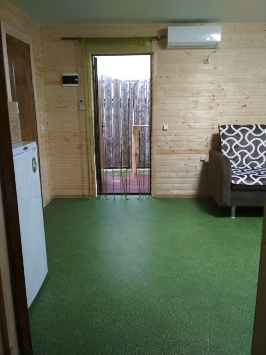 Номер сделан в виде отдельно стоящего вагончика, но со всеми удобствами и кондиционером, Возле номера выносной стол со стульями для отдыха на воздухе.