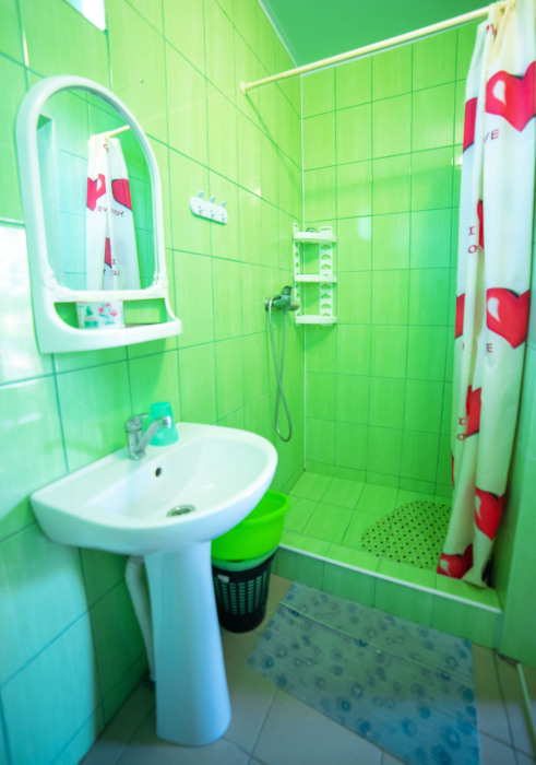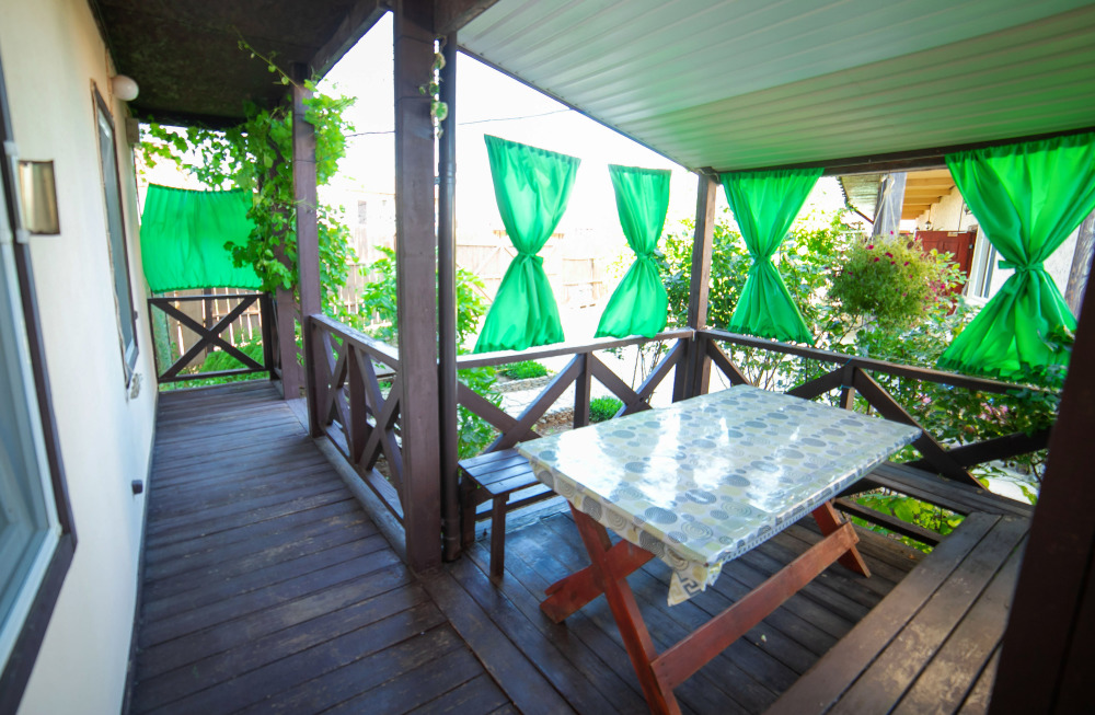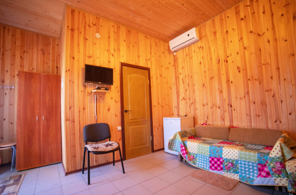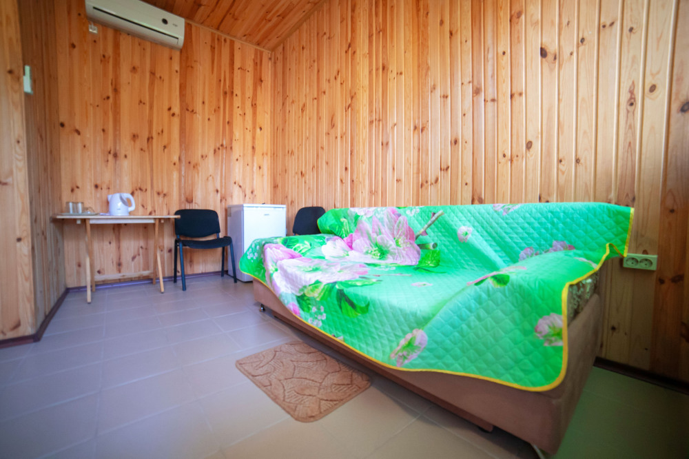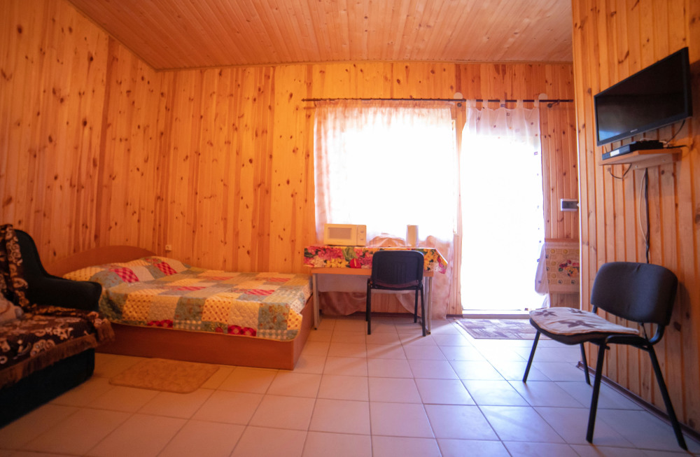 Номер расположен на отельной территории площадью 400 кв.м. Имеет террасу со столиком и стульями для отдыха на воздухе. Вода холодная и горячая круглосуточно, беспроводной интернет, все удобства.