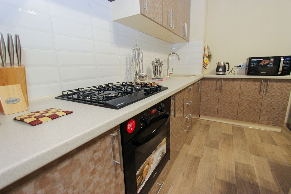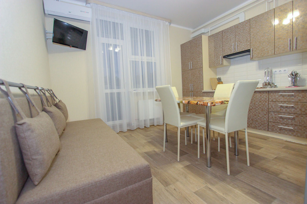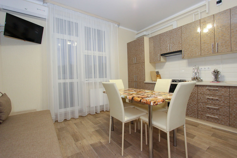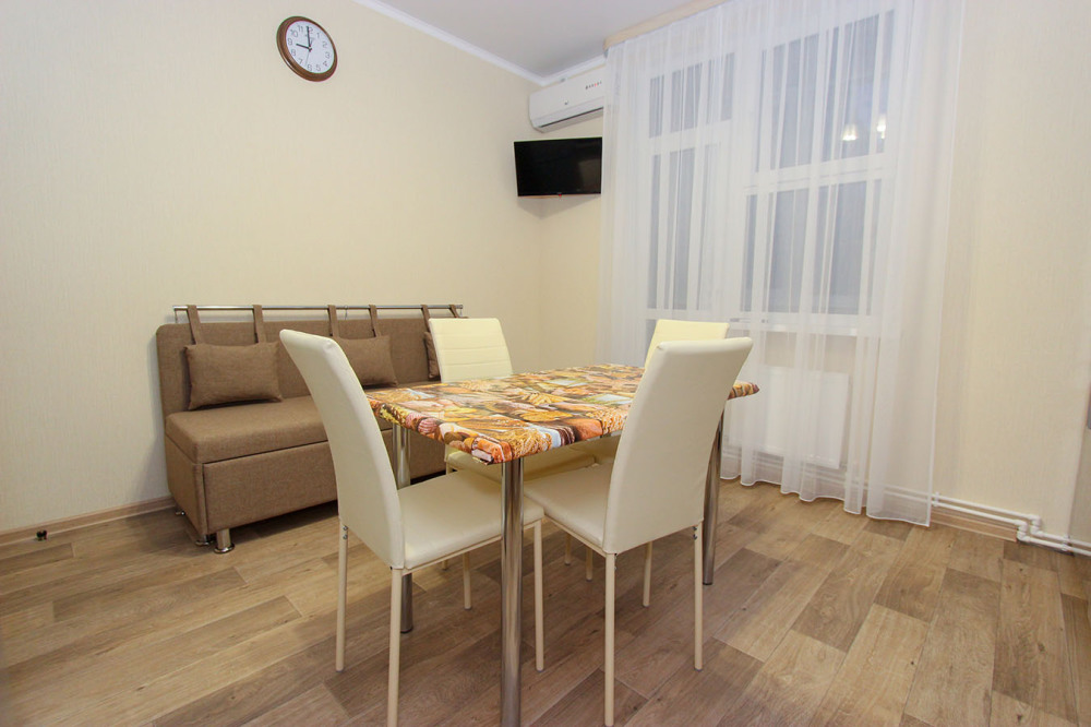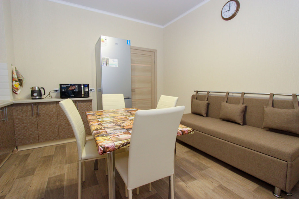— Квартира рассчитана на 7 человека, находится по Циолковского на первом этаже 5 этажного нового дома в жилом комплексе «КОНСОЛЬ».