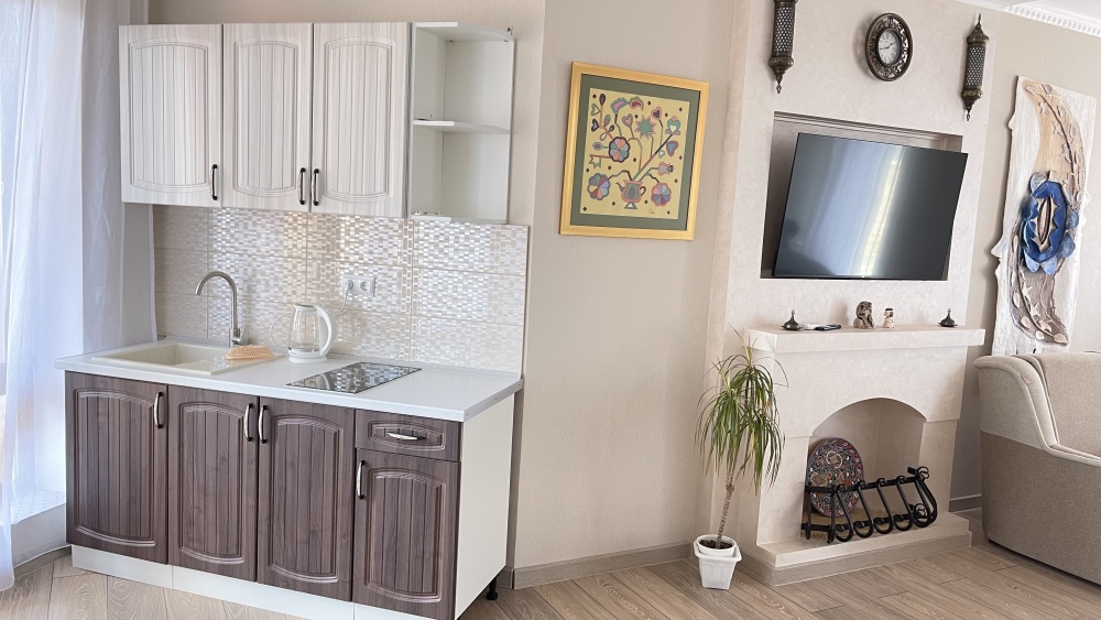 Двухкомнатные апартаменты в современном стиле. Оборудованная кухня , собственная ванная комната с душевой кабиной, туалетом и умывальником к Вашим услугам. Мы позаботились о каждой мелочи для Вашего удобства. В номере есть сейф.
