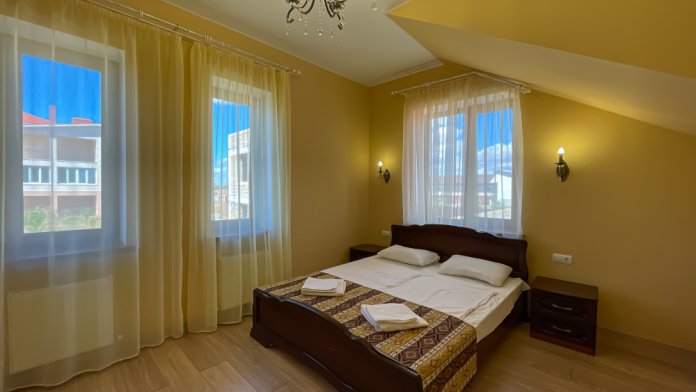 У нас есть все для комфортного отдыха: уютные двух и трехместные номера, внутренний двор, парковка. Вас приятно удивят комфорт и функциональность номеров, а гармоничный дизайн поможет расслабиться и погрузиться в атмосферу умиротворенности. Большая двухместная кровать с ортопедическим матрасом, ванна и большой телевизор не оставят Вас равнодушными.