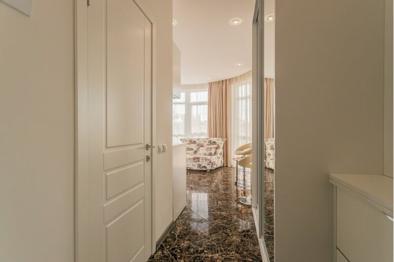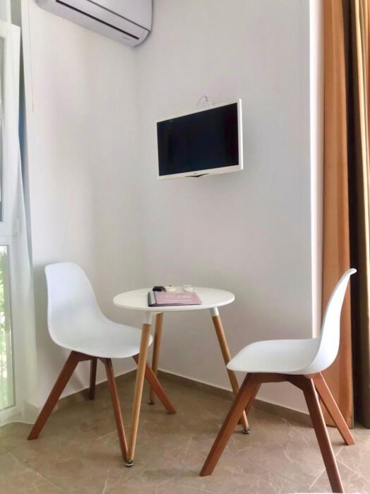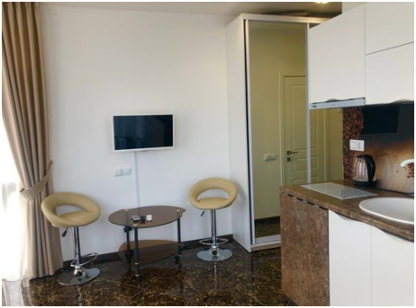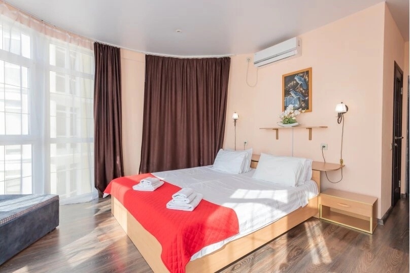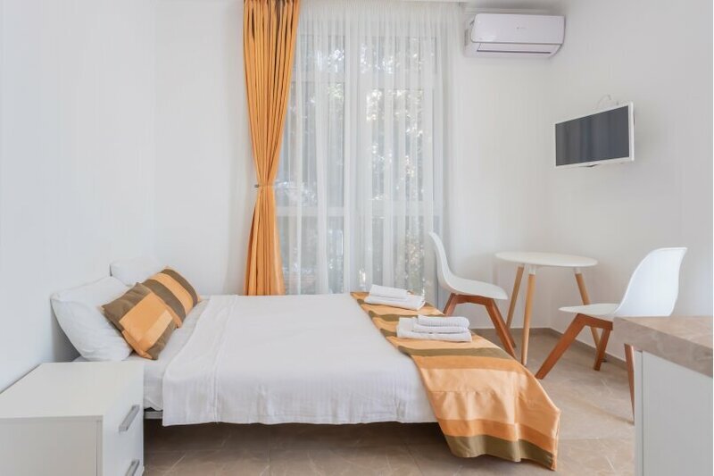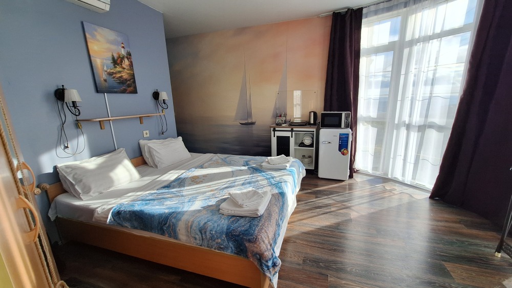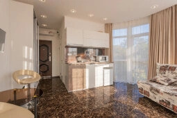Апартаменты оборудованы полноценной кухней . Спальные места - раскладные евро кровати или диваны. В некоторых номерах - 4 спальных места. Номер также оборудован кондиционером, набором посуды, текстиля, полотенец, стиральной машиной. При овербукинге может быть заменён на круглый-видовой номер.