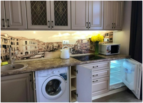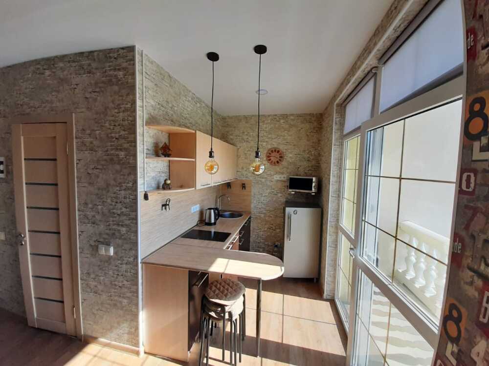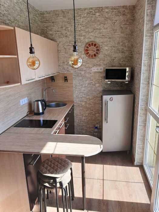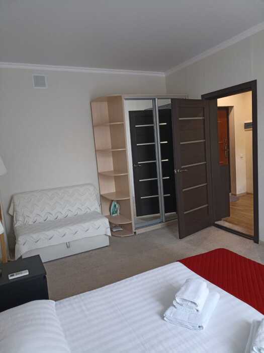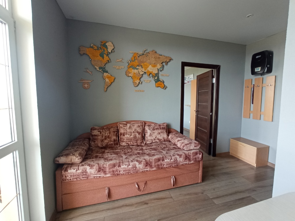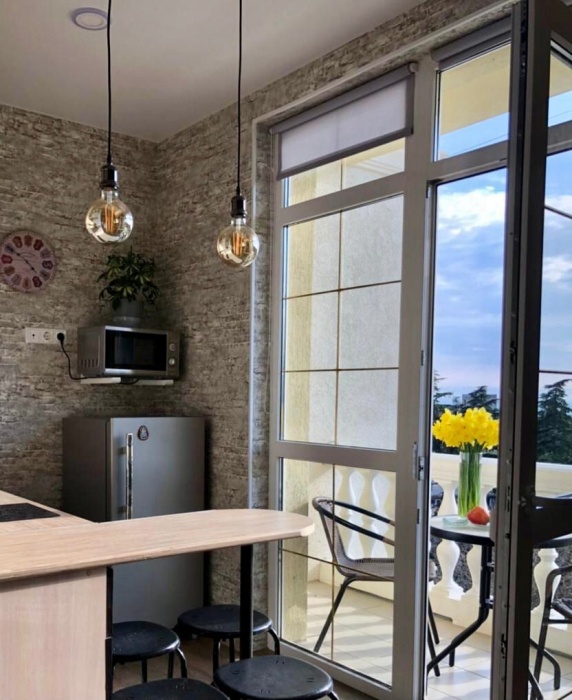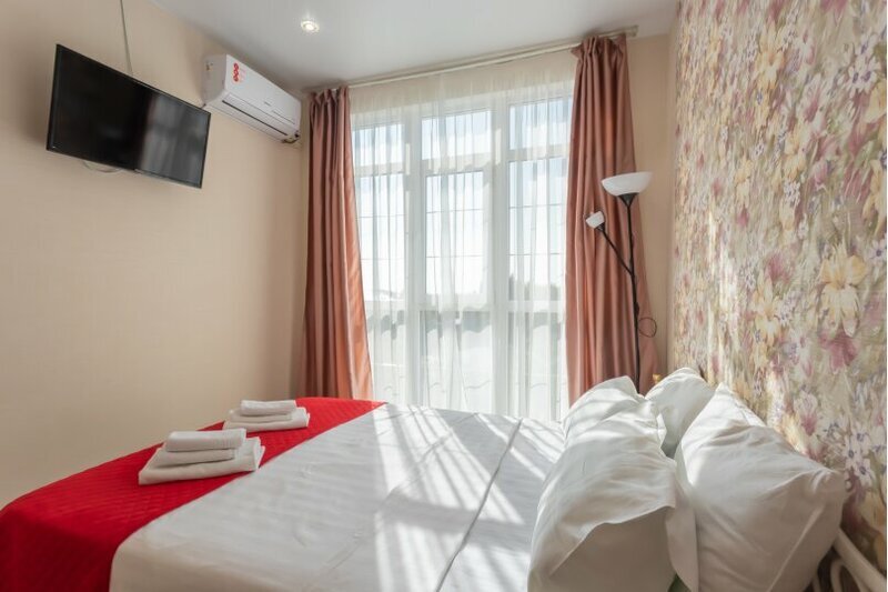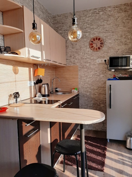 Светлые небольшие апартаменты с эркером. В апартаментах полноценная кухня. Спальное место - удобная раскладная еврокровать. Номер оборудован кондиционером, набором посуды, текстиля, полотенец, стиральной машиной.