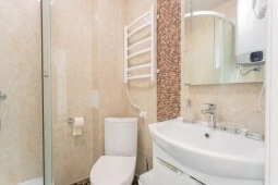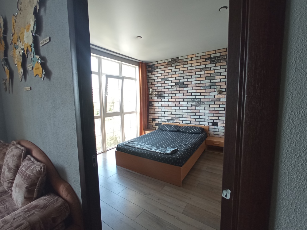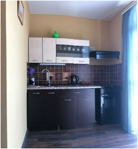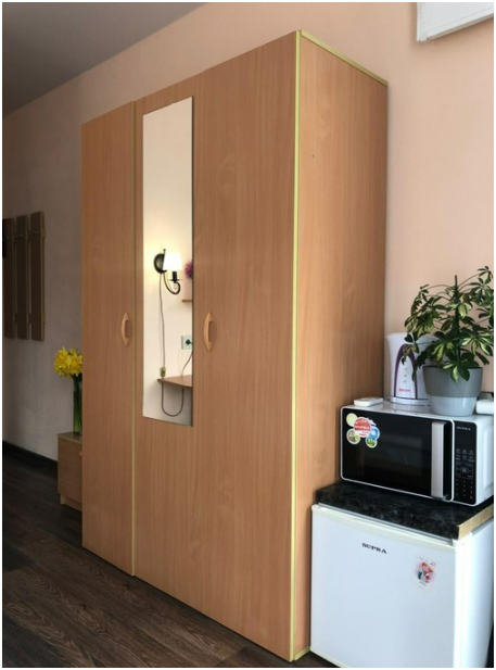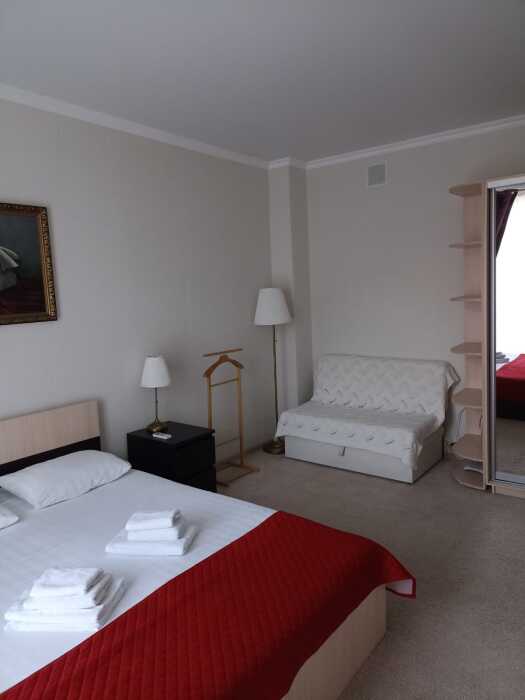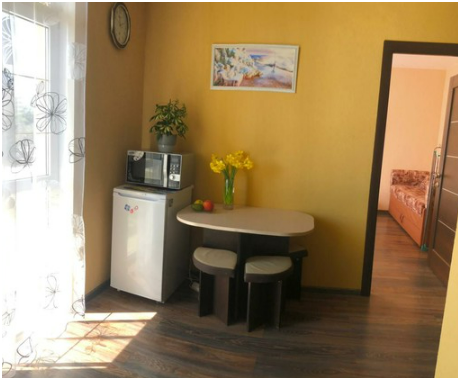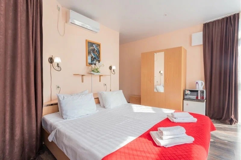 Номер рассчитан на размещение 1-2 гостей. Данный номера с 2 односпальными кроватями либо с одной большой двуспальной. Номер также оборудован кондиционером, бойлером набором посуды, кварцевыми обогревателями, мини кухней (холодильник, микроволновка, чайник, индукционная плита, набор для готовки).