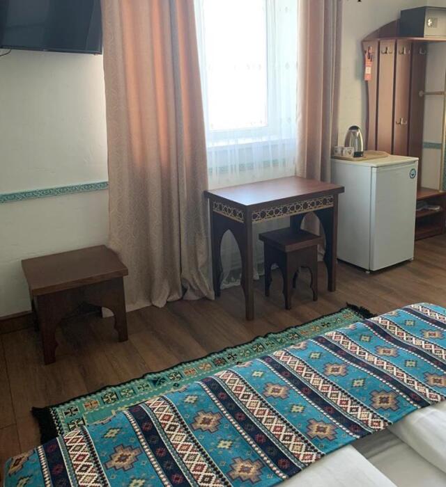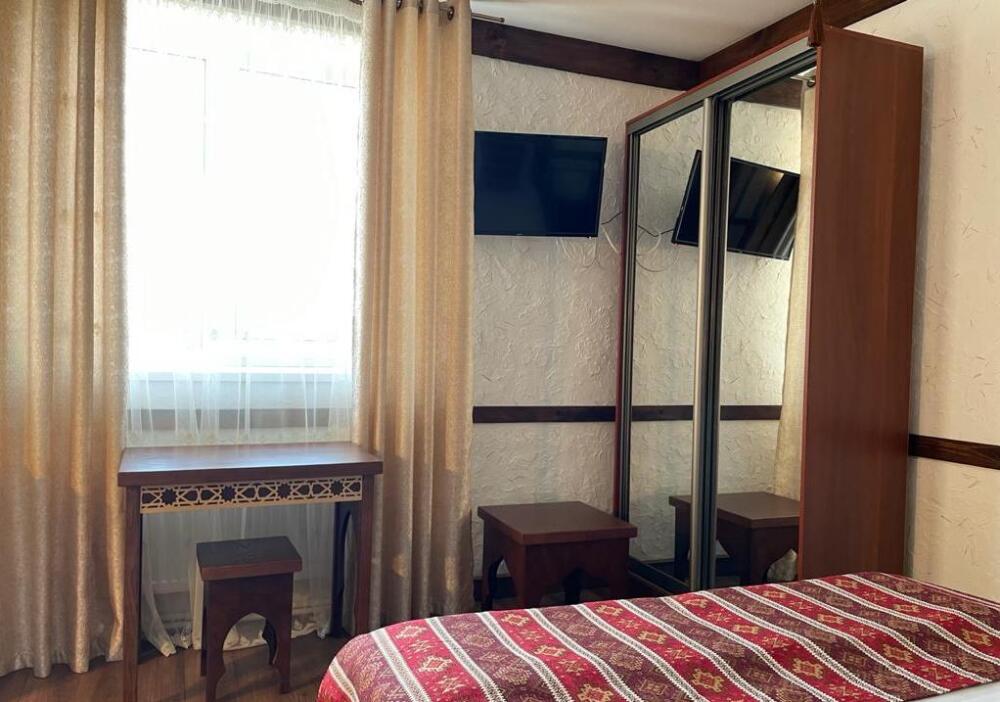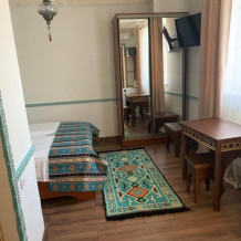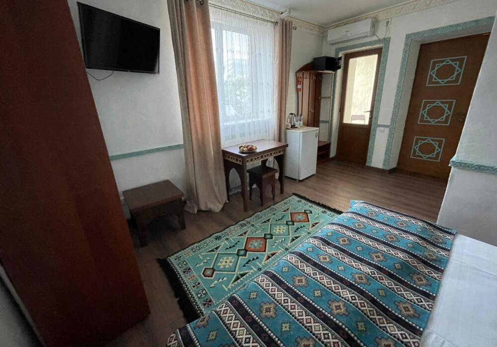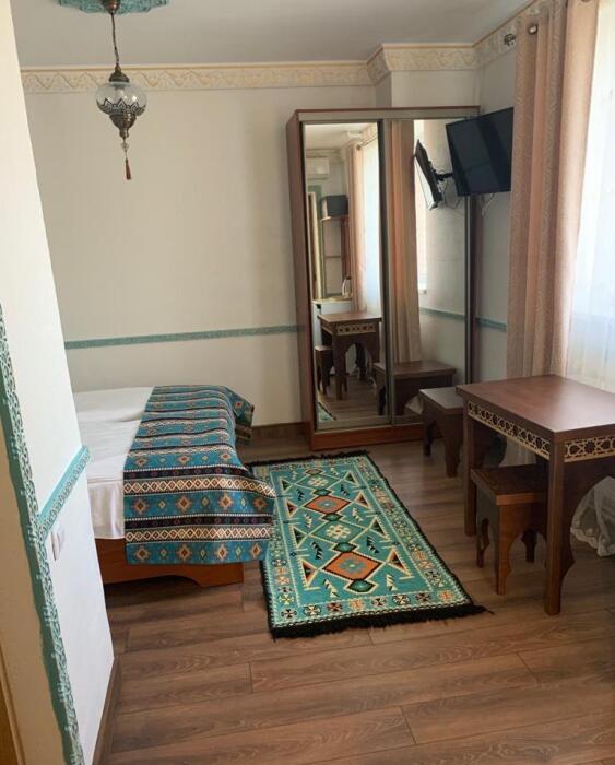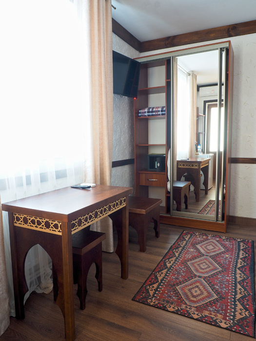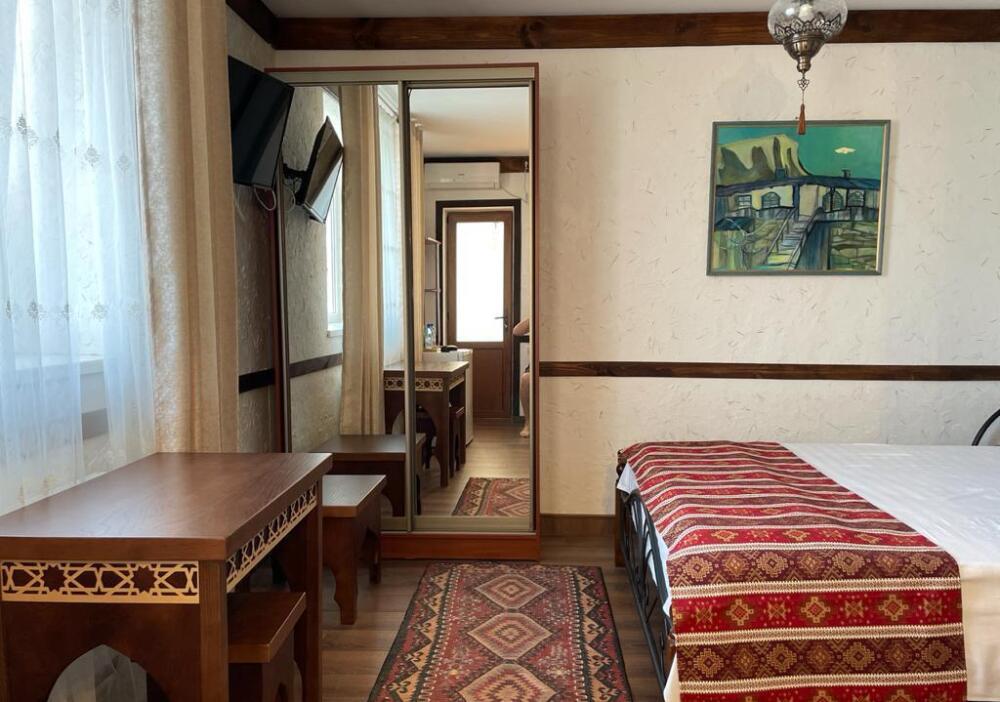 Однокомнатный двухместный номер категории Стандарт № 13 (площадь 18 м², в арабском стиле с собственной ванной комнатой, на втором этаже, с лоджией, видом на внутренний дворик, двухместное размещение, одна двухспальная кровать с ортопедическим матрасом и подушками).