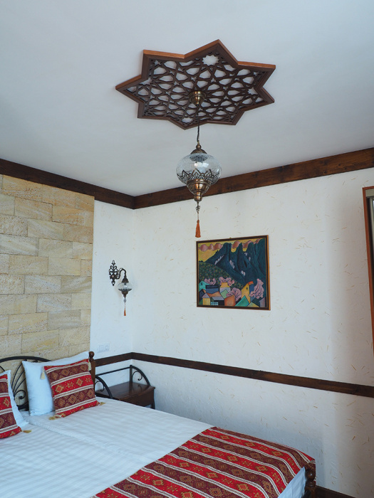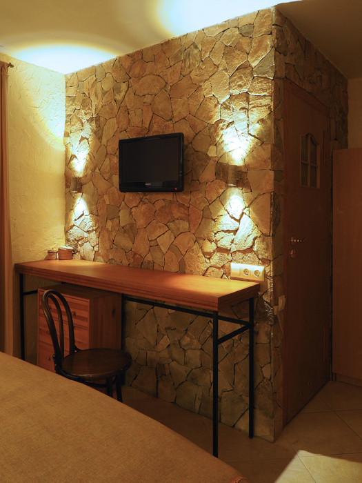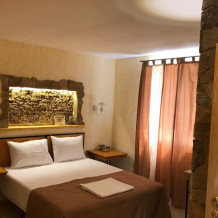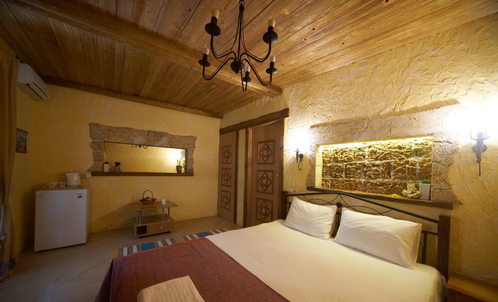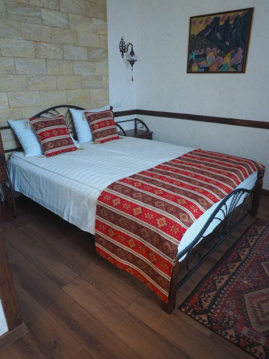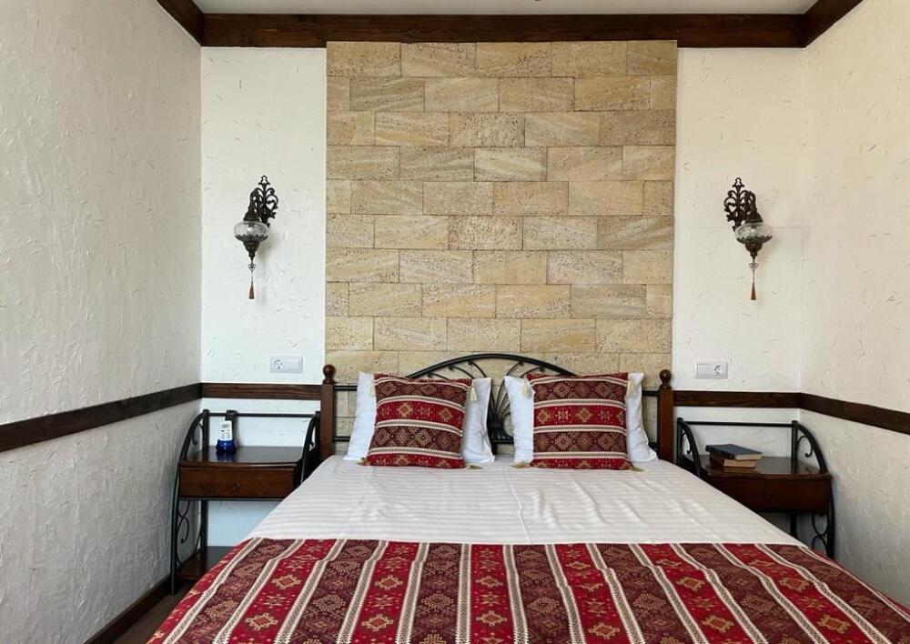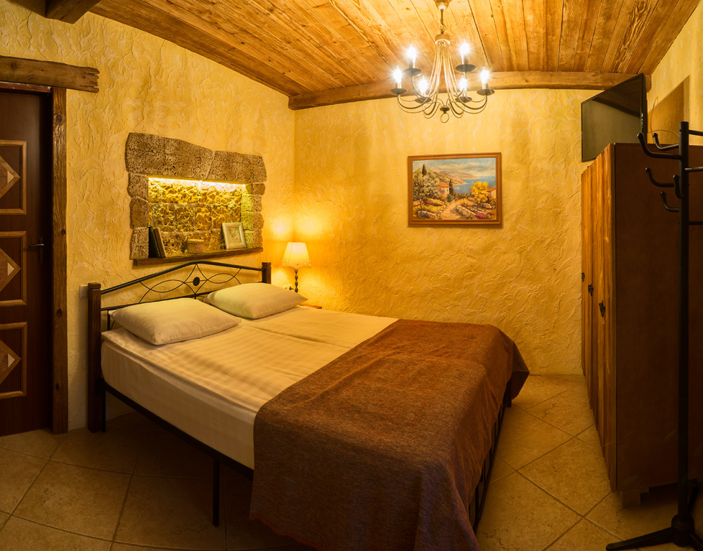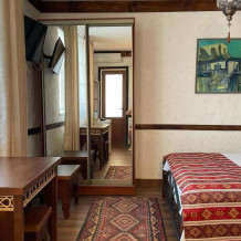 Однокомнатный двухместный номер категории Стандарт № 13 (площадь 18 м², в арабском стиле с собственной ванной комнатой, на втором этаже, с лоджией, видом на внутренний дворик, двухместное размещение, одна двухспальная кровать с ортопедическим матрасом и подушками).