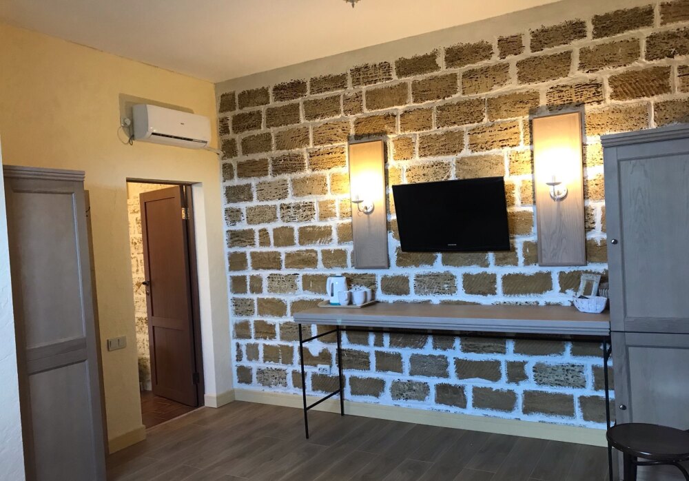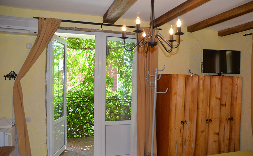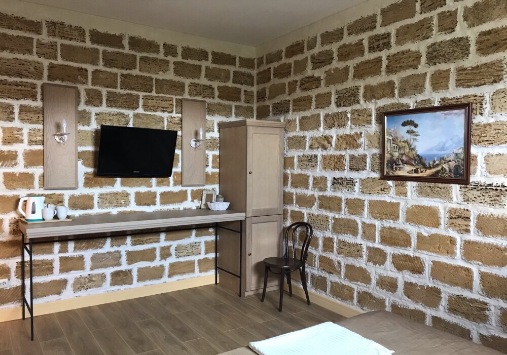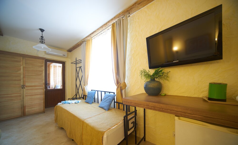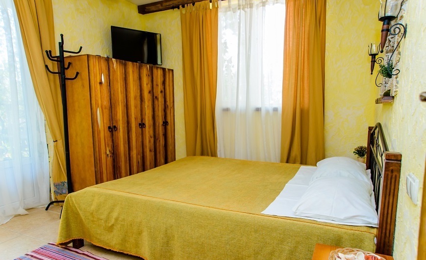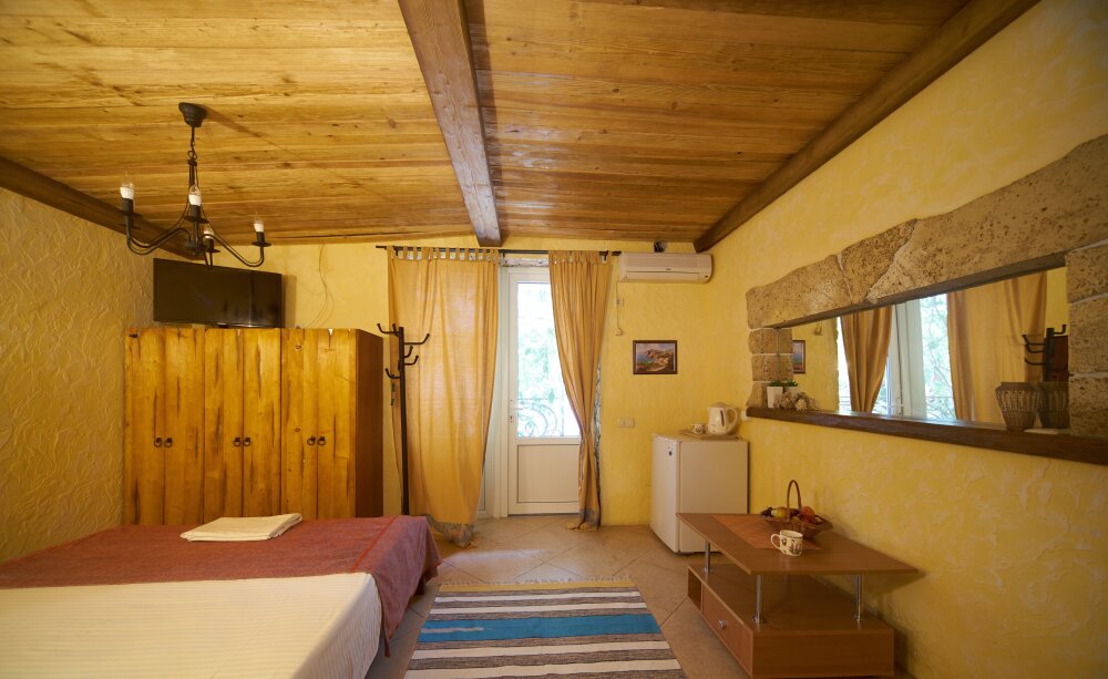 Скрасить ожидание завтрака поможет наш фирменный крымский травяной чай или ароматный кофе по-восточному. В собственной ванной комнате предоставляются бесплатные туалетно-косметические принадлежности и фен. В числе прочих удобств телевизор с плоским экраном.