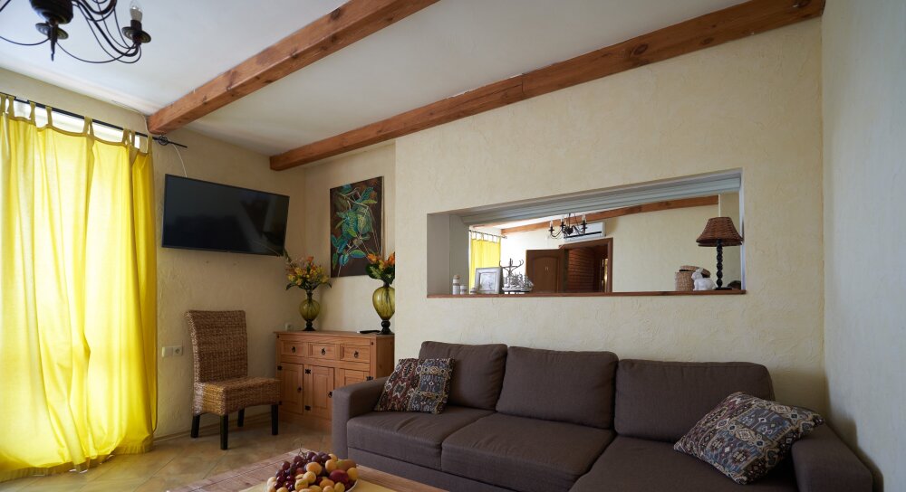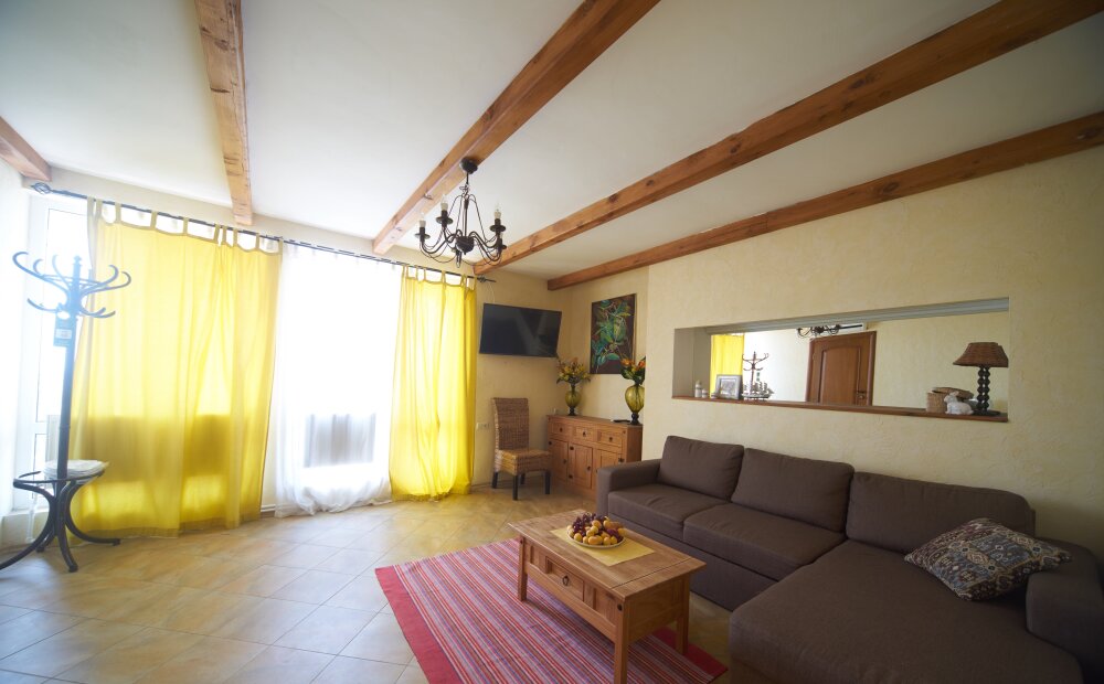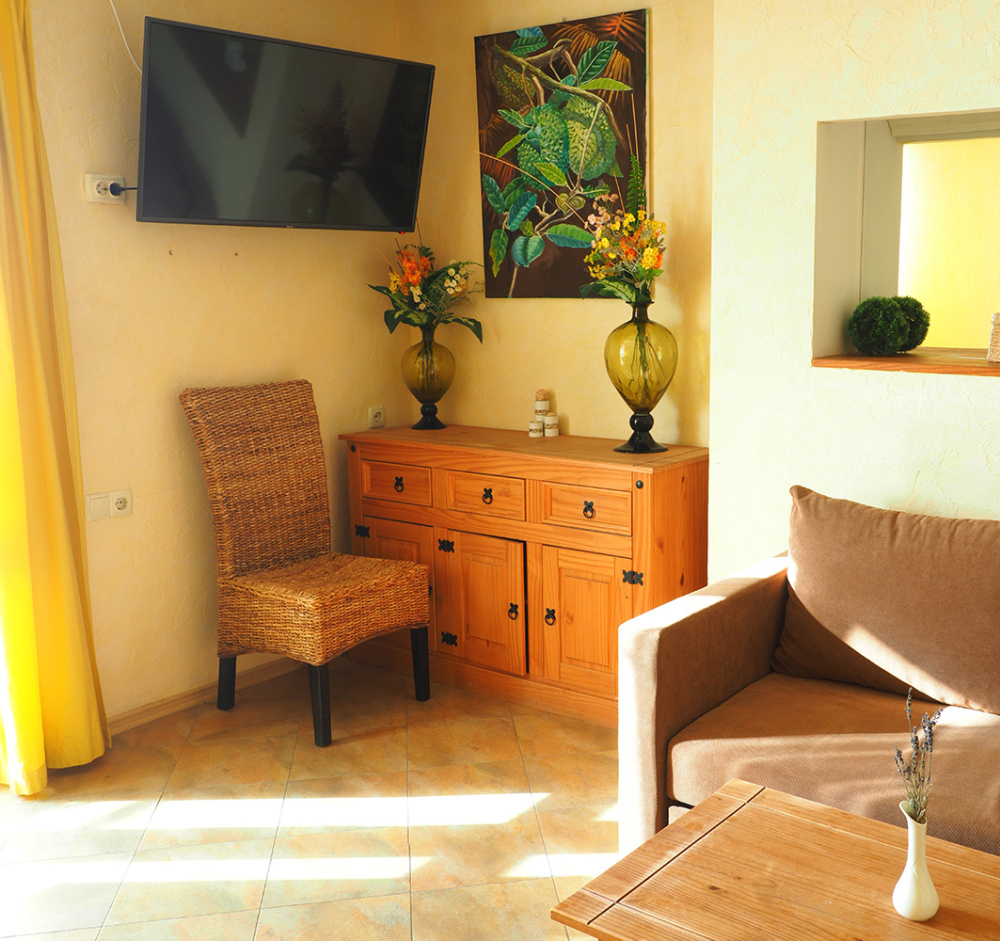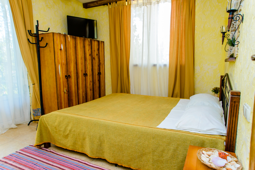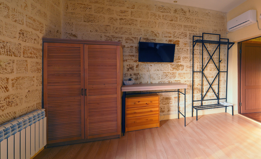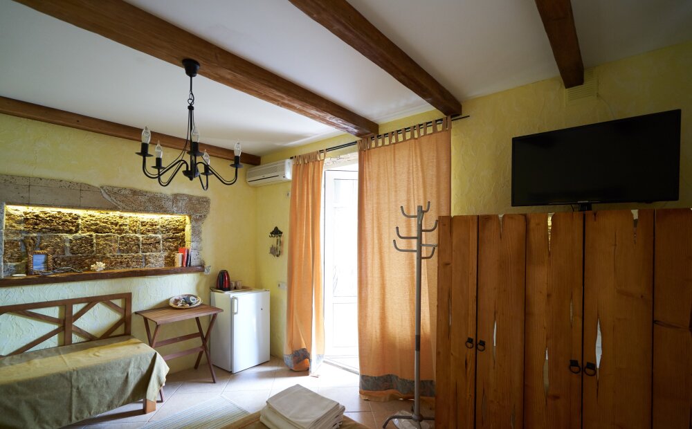 Скрасить ожидание завтрака поможет наш фирменный крымский травяной чай или ароматный кофе по-восточному. В собственной ванной комнате предоставляются бесплатные туалетно-косметические принадлежности и фен. В числе прочих удобств телевизор с плоским экраном.