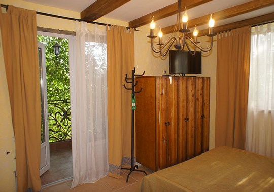 Однокомнатный двухместный номер категории Стандарт № 3 (площадь 18 м², в средиземноморском стиле с собственной ванной комнатой, на втором этаже, с лоджией, видом на внутренний дворик, двухместное размещение, одна двухспальная кровать с ортопедическим матрасом и подушками).