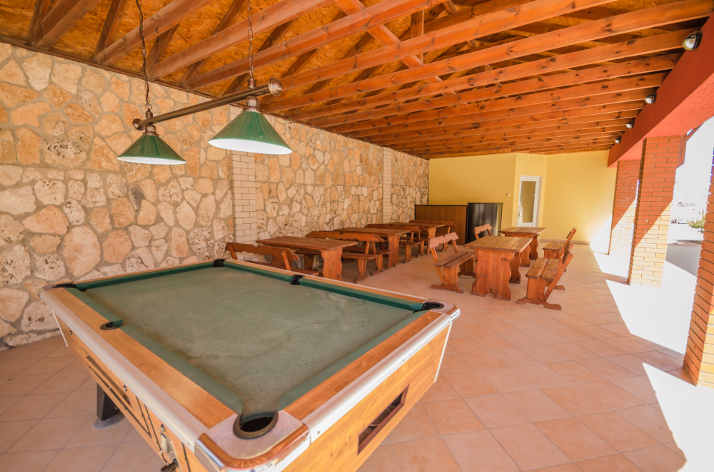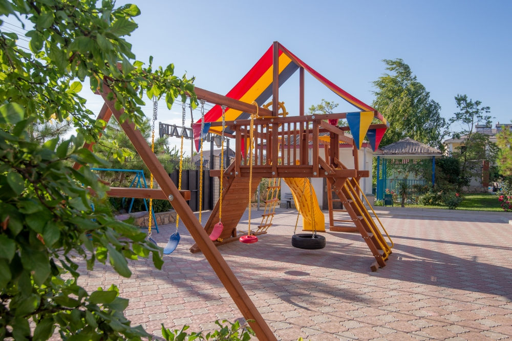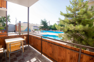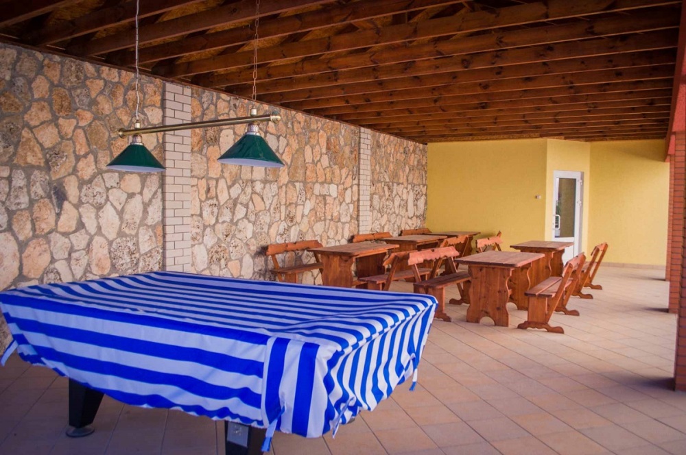 Территория нашего гостевого дома «Ланата» оборудована 2-мя бассейнами для взрослых и детей, охраняемой парковкой, спортивной площадкой, детской площадкой, мангалами и беседками, большой крытой террасой для вечерних посиделок, а также теннисным столом и бильярдом «Американка».