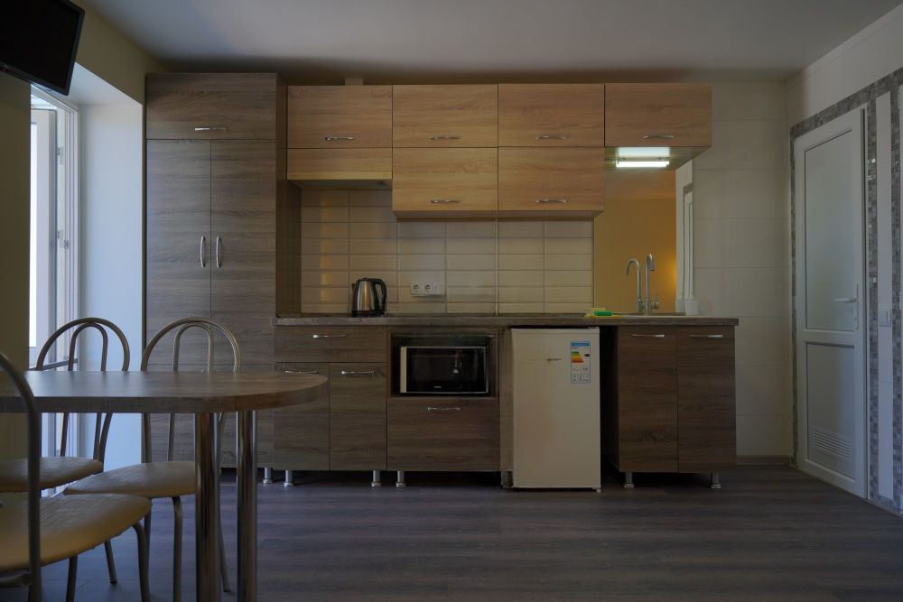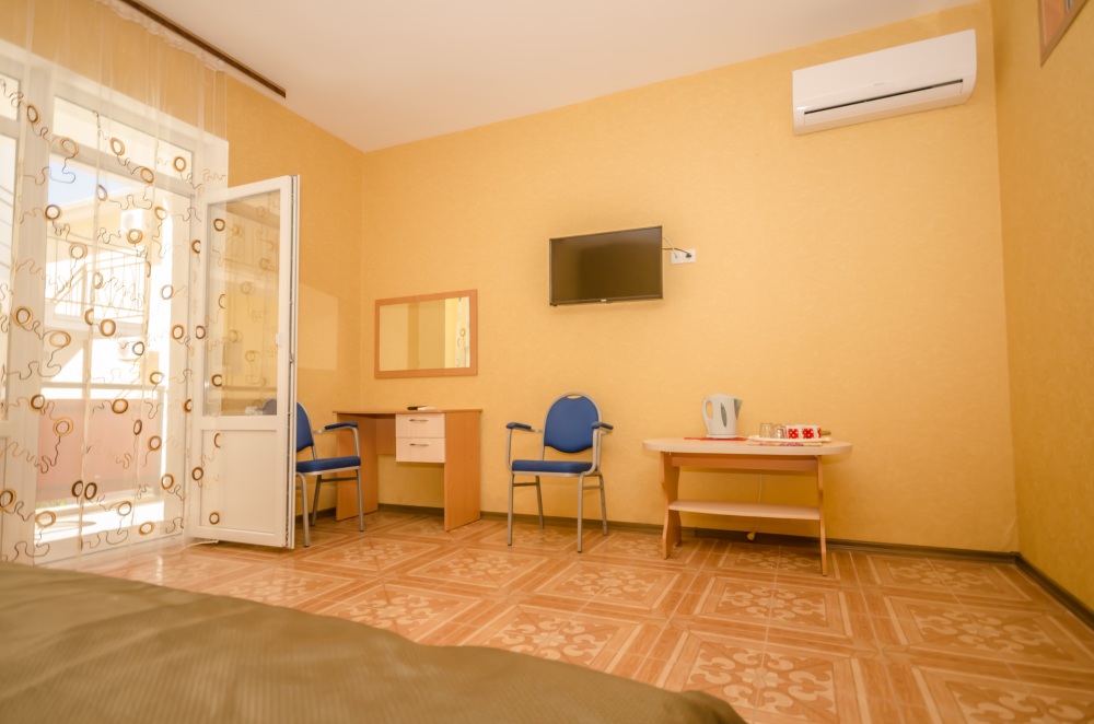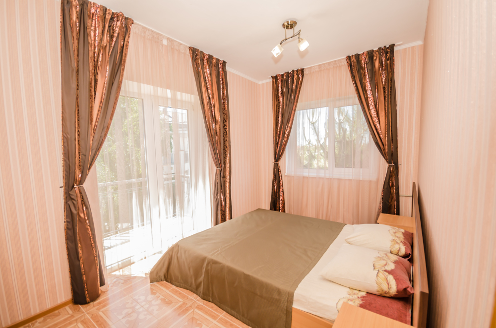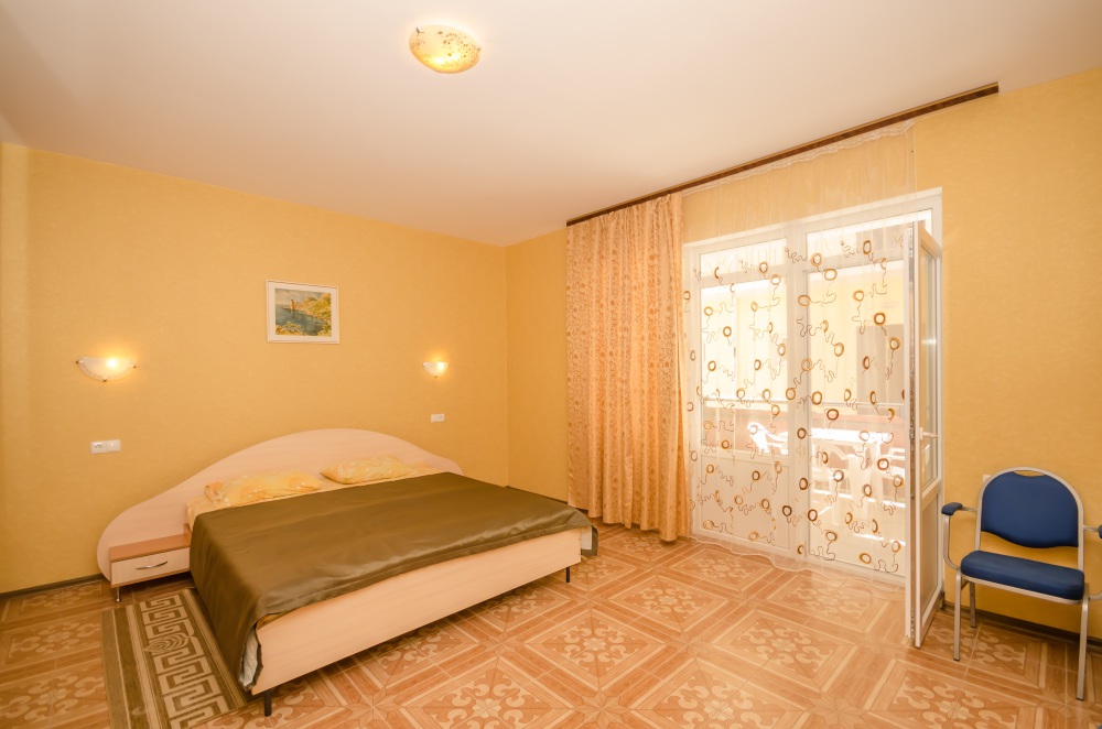 Наш гостевой дом включает в себя: 16 Стандартных номеров и 4 двухкомнатных Семейных уютных номера в большом корпусе и 16 номеров категории Люкс, оснащенных мини-кухнями, и размещенных в зданиях новых коттеджей. Все номера оборудованы кондиционерами, TV, холодильниками. Для номеров в коттеджах - пользование собственной мини-кухней с набором посуды.