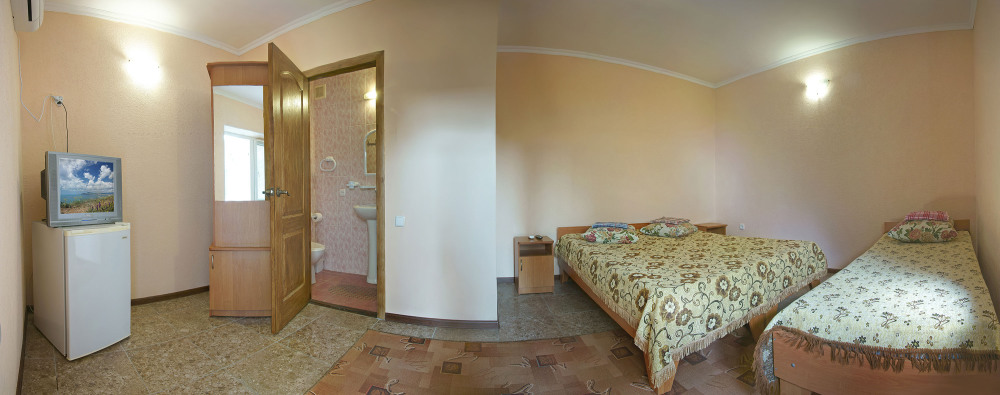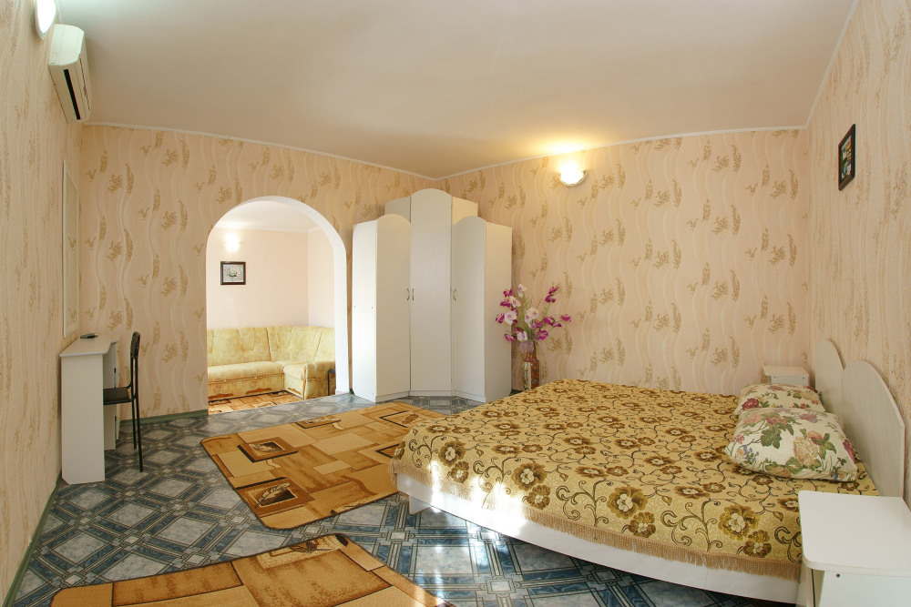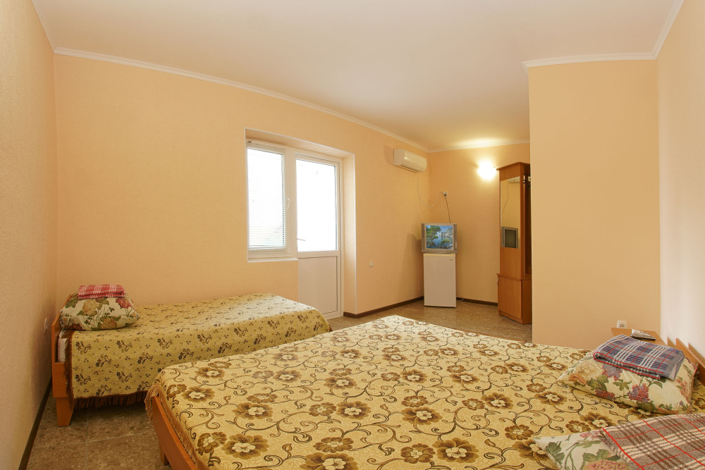 El Patio - это уютный двухэтажный отель, гарантирующий Вам недорогой и приятный семейный отдых. Закрытая территория с ухоженным палисадником, утопающим в зелени, убережет Вас от курортной суеты и полуденного зноя. Комфортные 3-х и 4-х местные номера оборудованы отдельными санузлами с душем и горячей водой. В каждом номере имеется холодильник, телевизор со спутниковыми телеканалами и кондиционер. Для самых взыскательных гостей у нас есть 2-комнатные номера. А свободный wi-fi позволит Вам всегда оставаться на связи со всем остальным миром.