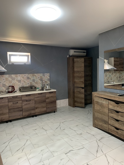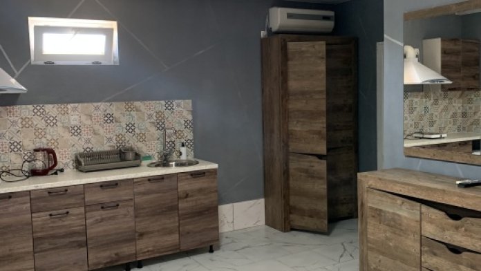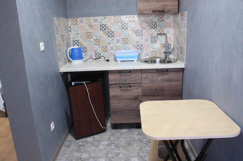 двухкомнатный номер расположен на первом этаже, со своей верандой и со столиком. В номере своя кухня с электроплитой.