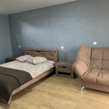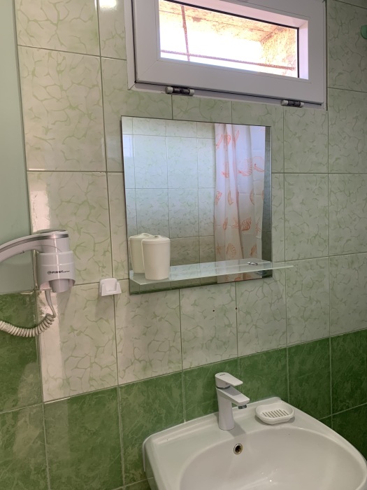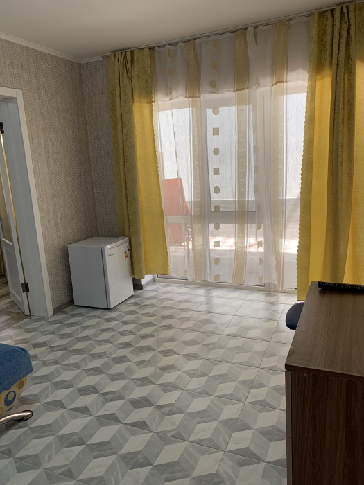 Однокомнатный номер находится на первом этаже, кроме этого этот номер еще имеет кухню с необходимой посудой и принадлежностями. Номер рассчитан на 4 места.