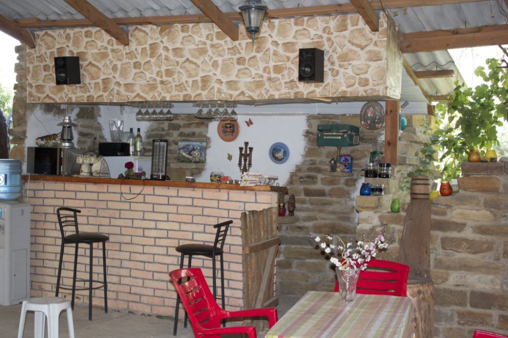 Отдых в гостевом доме в целом понравился. Местоположение неплохое. Если вы на машине, можно посетить разные пляжи. Недалеко от посёлка г. Судак, мыс. Меганом. До самого пляжа, который находится в посёлке около 1 км, можно добраться пешком.Из минусов далеко расположены магазины и аптека.Ближайщие в Солнечной долине и на пляже. Свинину для шашлыка в посёлке не продают, только курица и баранина. За мясом ездили в Судак. Сигареты на пляже тоже не продаются. Зато с алкоголем нет проблем, рядом фирменный винный магазин. Ещё можно купить домашнее вино и свежий виноград рядом с озером. Вино 350 руб, крупный виноград около 180 руб. В номере все стандартно. Убирают и меняют постель раз в неделю.Из минусов туалет и ванна общие, не удобно, но за такие деньги нормально. В туалетах все чистенько, убирают территорию отлично. Кухня тоже общая, кастрюльки, сковородки, посуда, чайник, микроволновка-все это хозяйка предоставляет.Посуда общая на всех.Есть мангал. Территория гостиницы просторная. Всё устроено со вкусом, есть лежаки, гамаки, столики с лавочками, детская песочница. Территория с зелёными деревьями и кустарники. Вечером можно посидеть отдохнуть в приятной компании на свежем воздухе. Комары правда злючие, но они везде на природе, от этого никуда не деться. Запаситесь фумигаторами и спреями.Рядом со столовой, место для приёма пищи.Много столиков со стульями, как в кафе.Там же большой телевизор и бильярдный стол. Ставлю за эти развлечения большой + отелю. Людей в отеле много, на кухне бывает тесно. За это ставлю -.Цена за номер не кусается, по сравнению с отелями, где все удобства в номере. Если вас не смущает общая кухня и санузел, отель Дионис вам подойдёт.