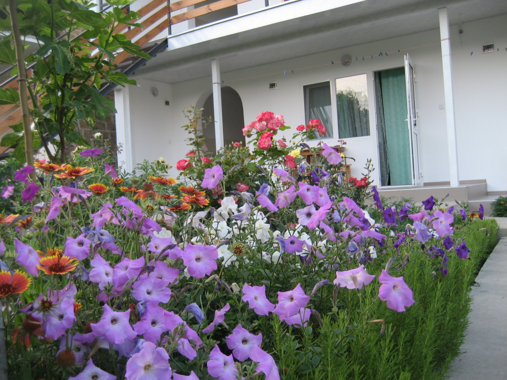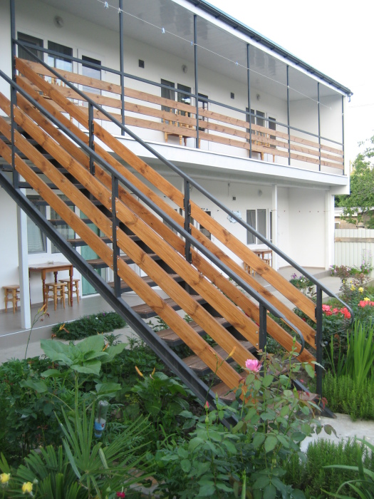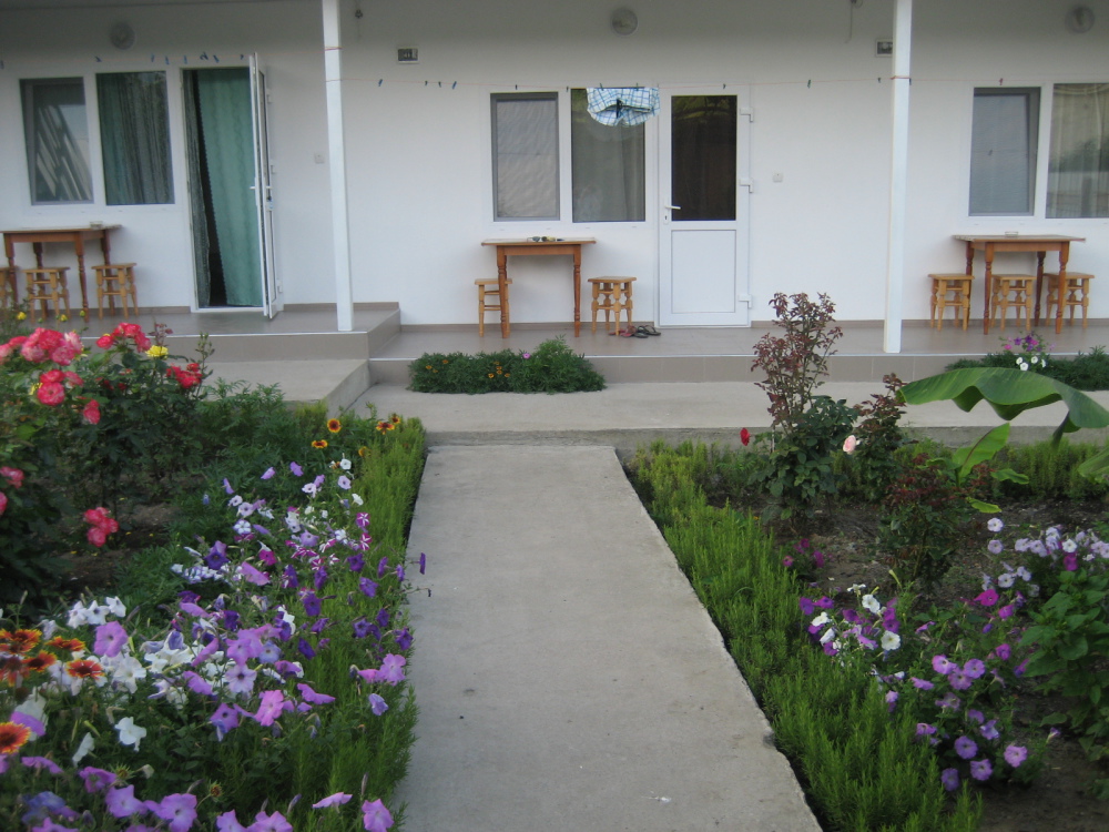 Номерной фонд: просторный малолюдный двор, много зелени, цветов. Во дворе есть мангал.