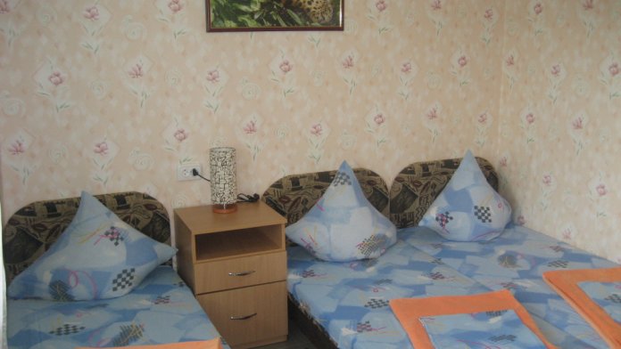 Номерной фонд: чистые, прохладные и просторные номера с высокими потолками с удобствами в номере, собственный холодильник, телевизор. У входа в каждый номер столик со стульями.